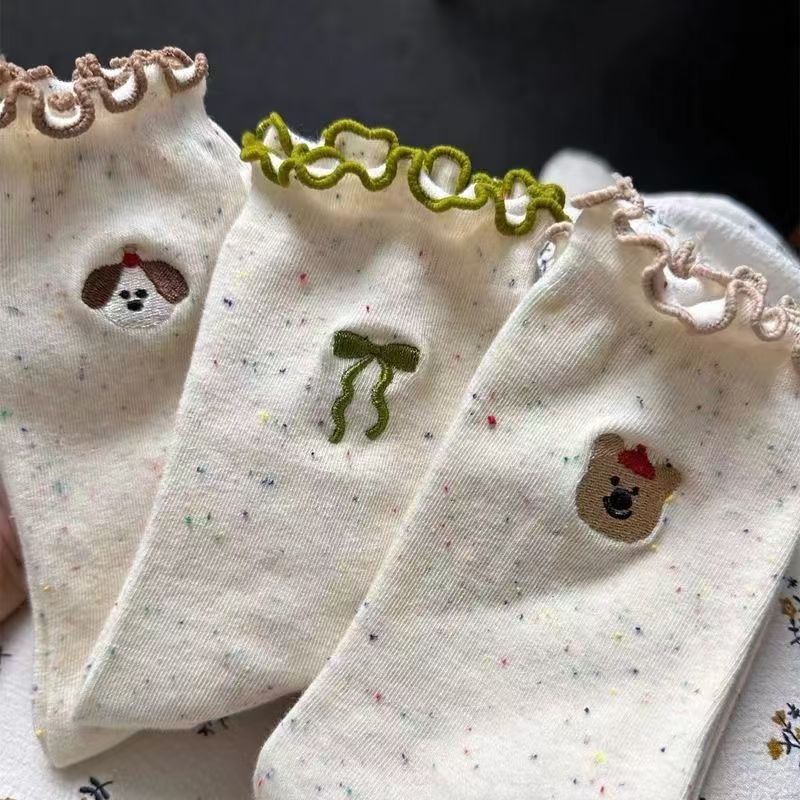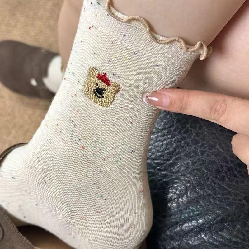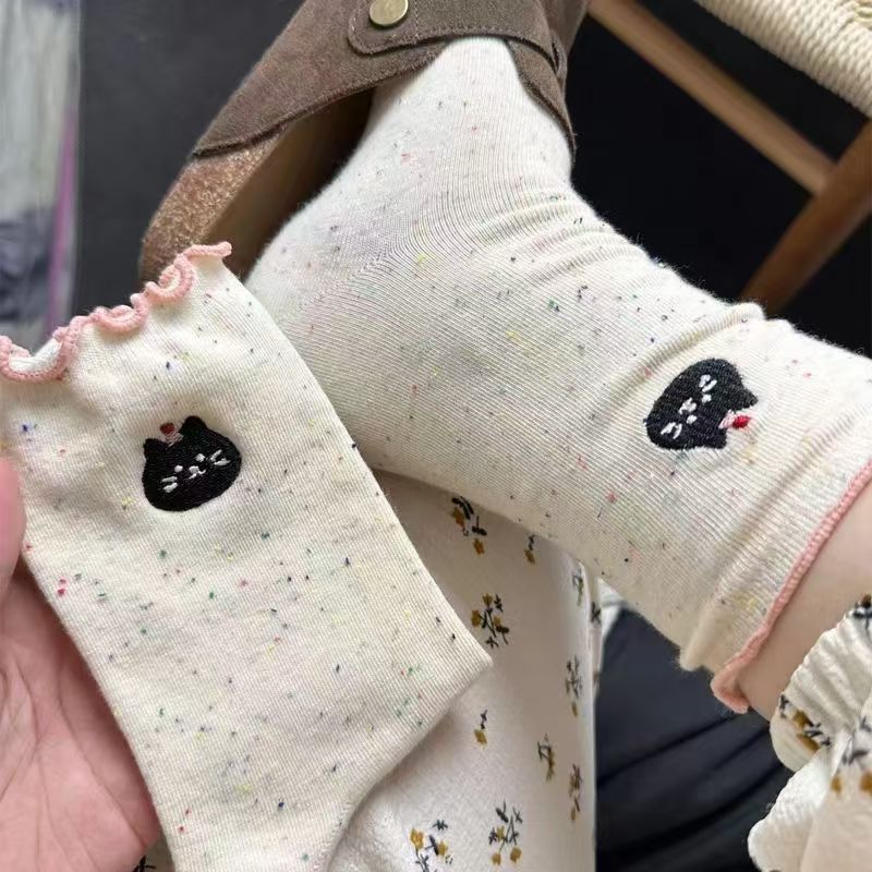 彩色点子纱女生日系潮学院风卡通中筒袜秋季女袜诸暨袜业批发货源