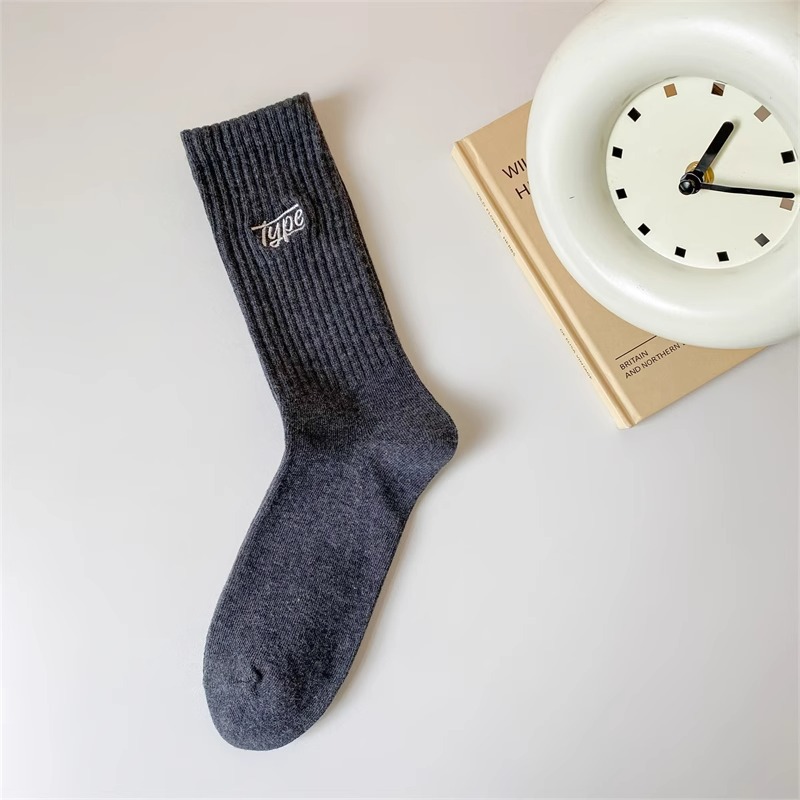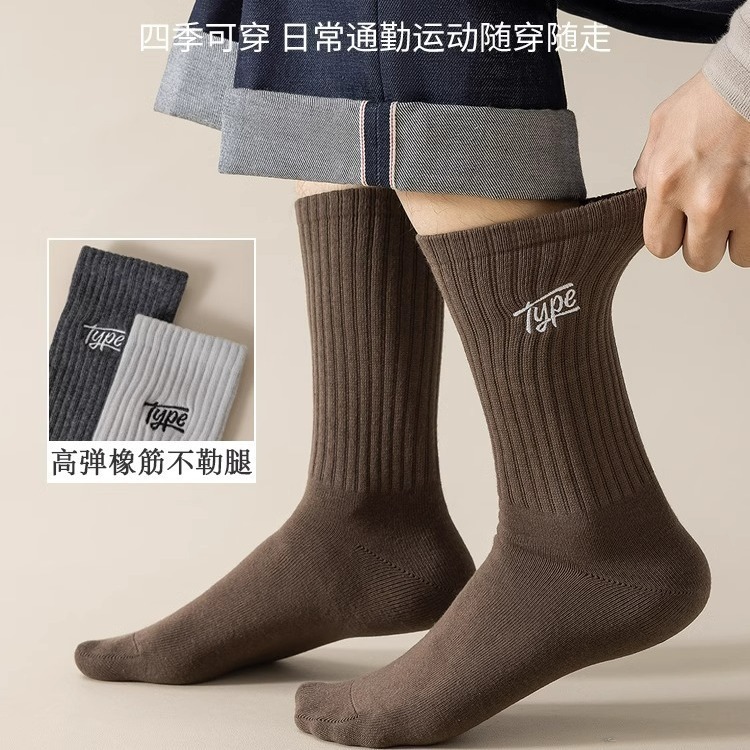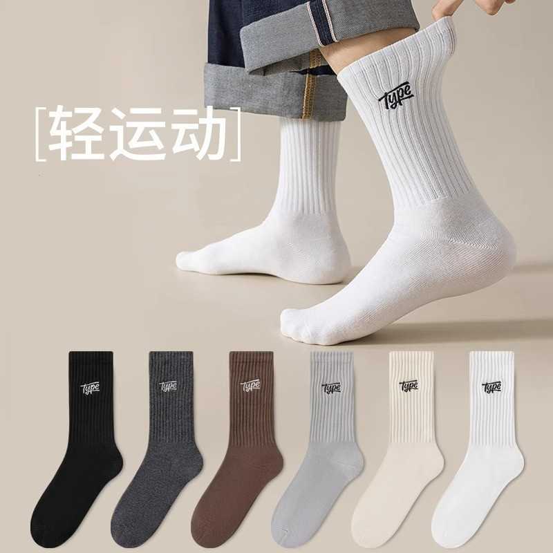 秋冬季袜子男中筒袜潮流男士字母防臭吸汗男袜篮球运动黑白色长袜