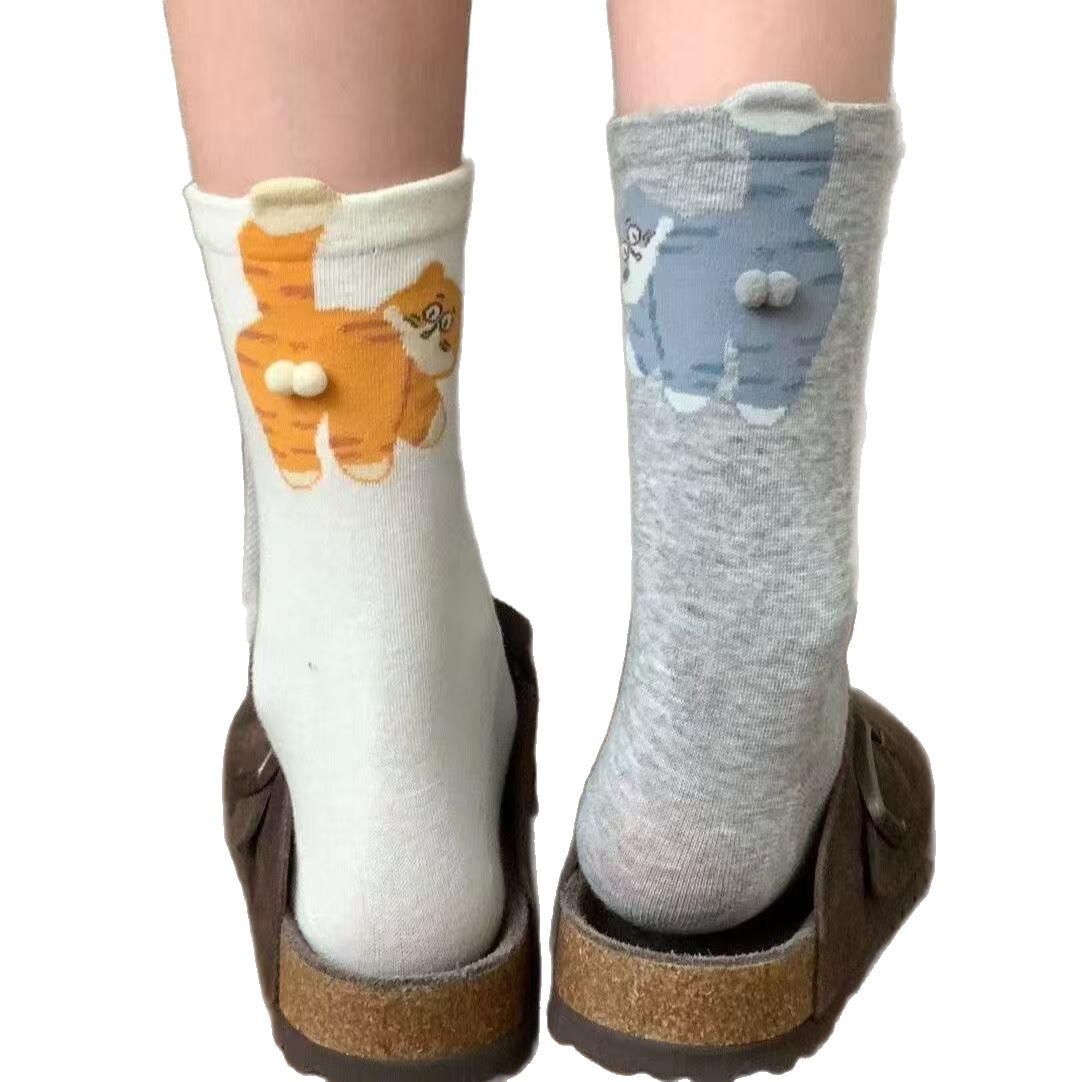 袜子女款夏秋季猫蛋蛋搞怪女袜可爱立体无骨街潮女袜诸暨袜业批发