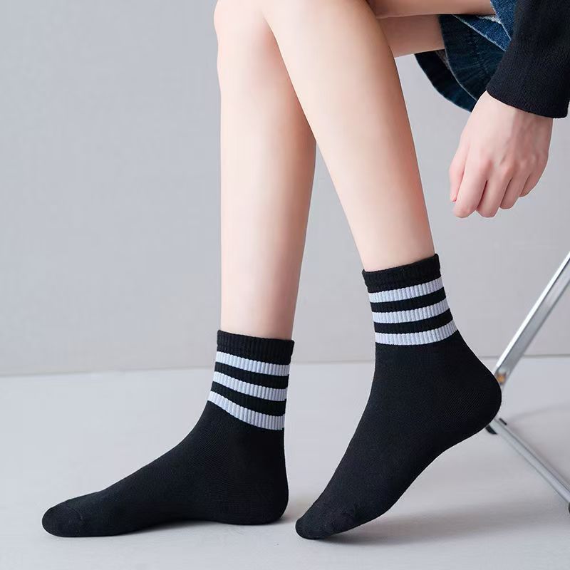 诸暨春夏袜子学生运动三杠袜子女中筒袜网红款鲨鱼裤配潮袜女袜