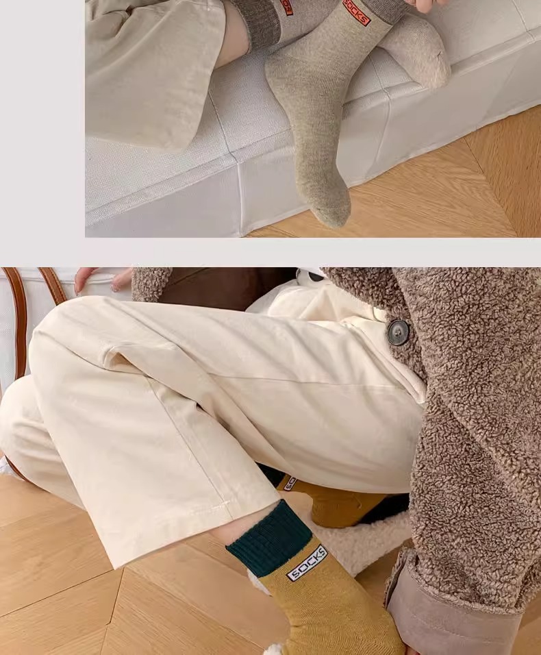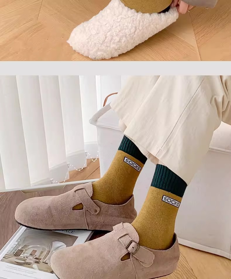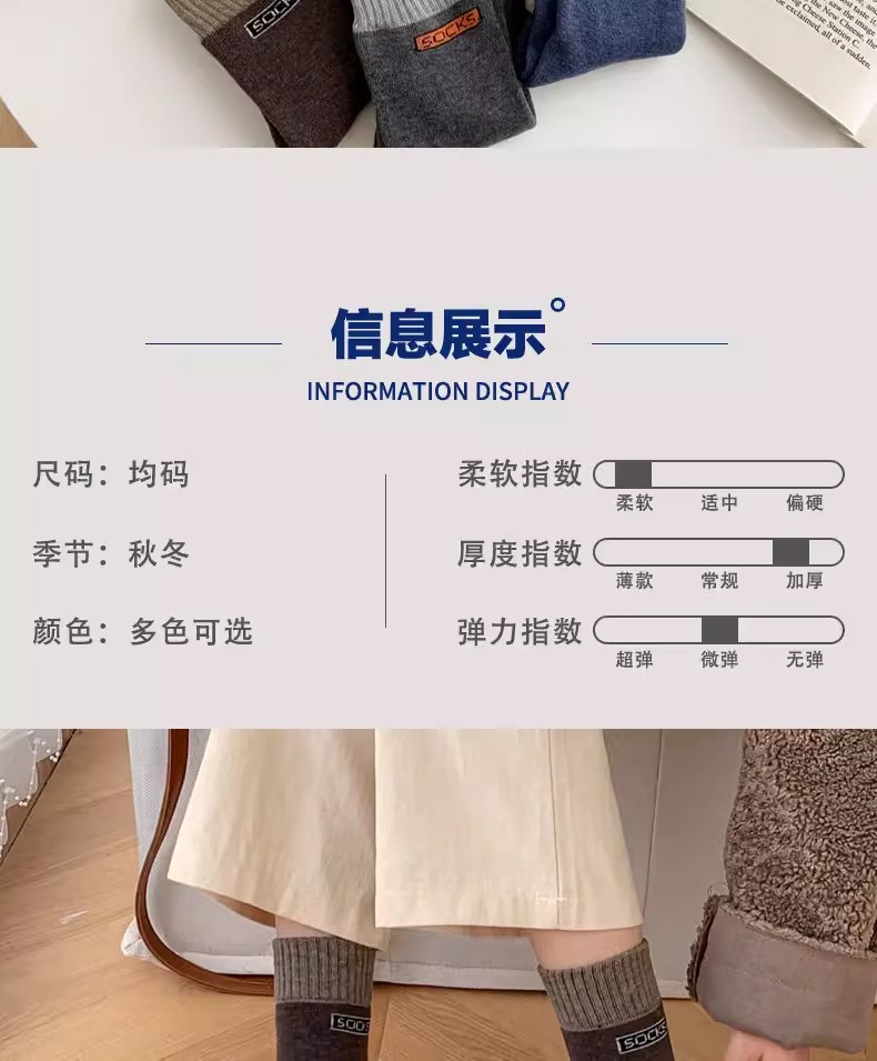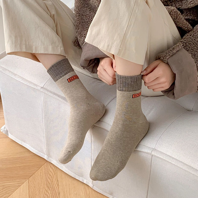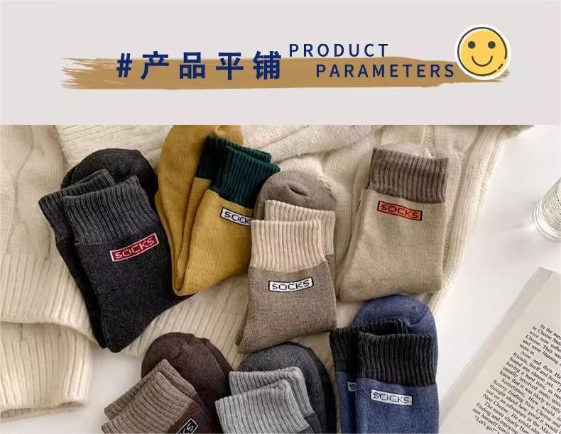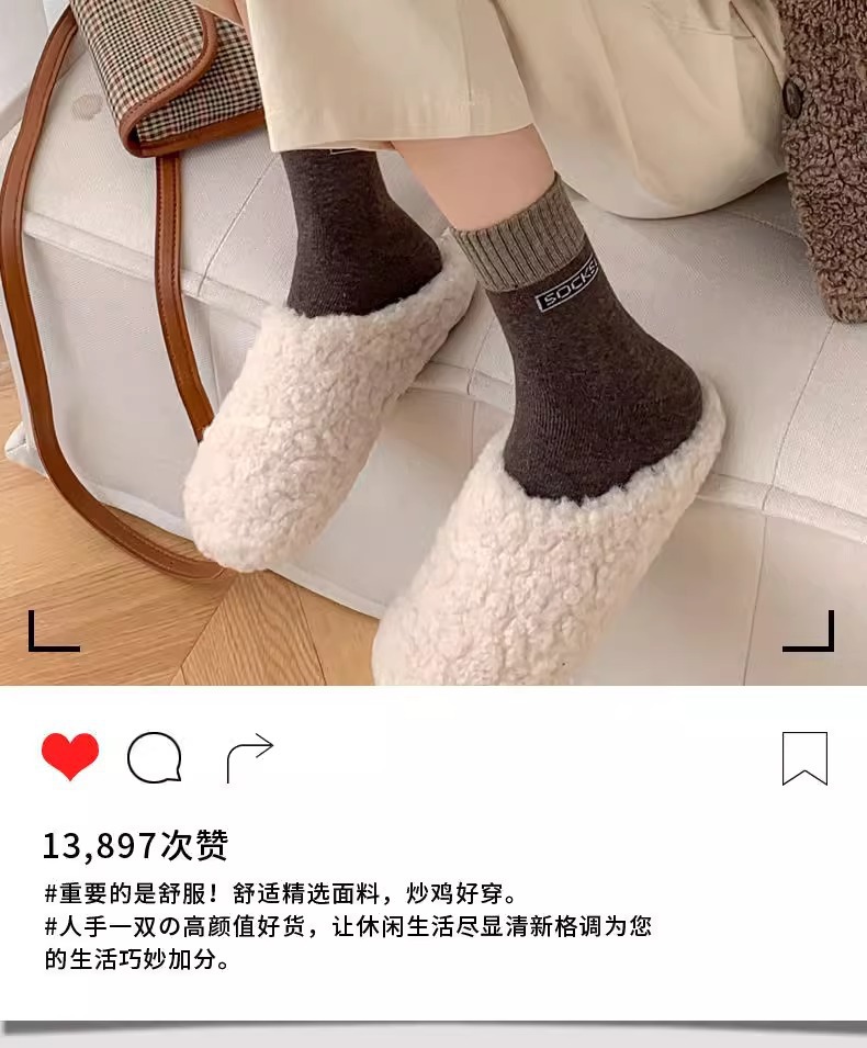 冬季中长筒袜韩版加厚保暖毛线袜子女士秋冬毛圈袜男女同款袜子男
