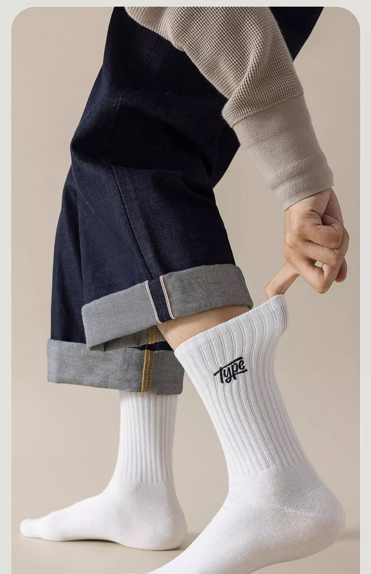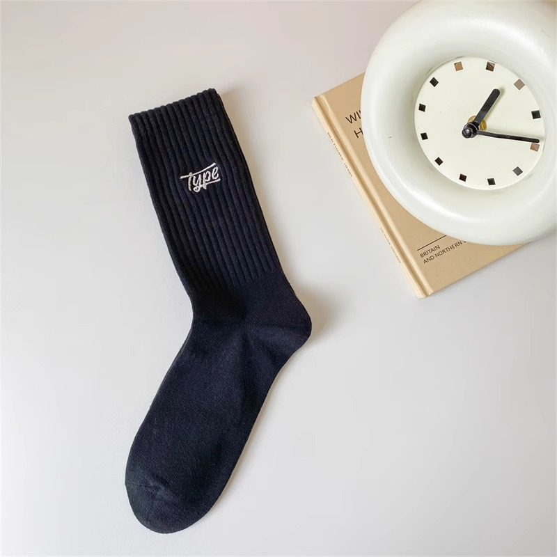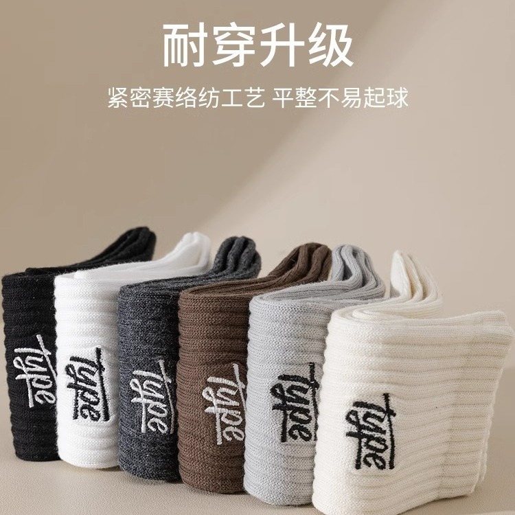 秋冬季袜子男中筒袜日系男士纯色防臭吸汗男袜篮球运动黑白色长袜