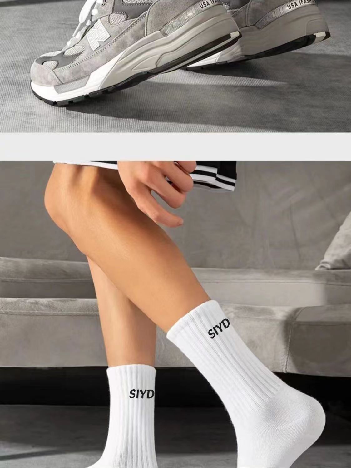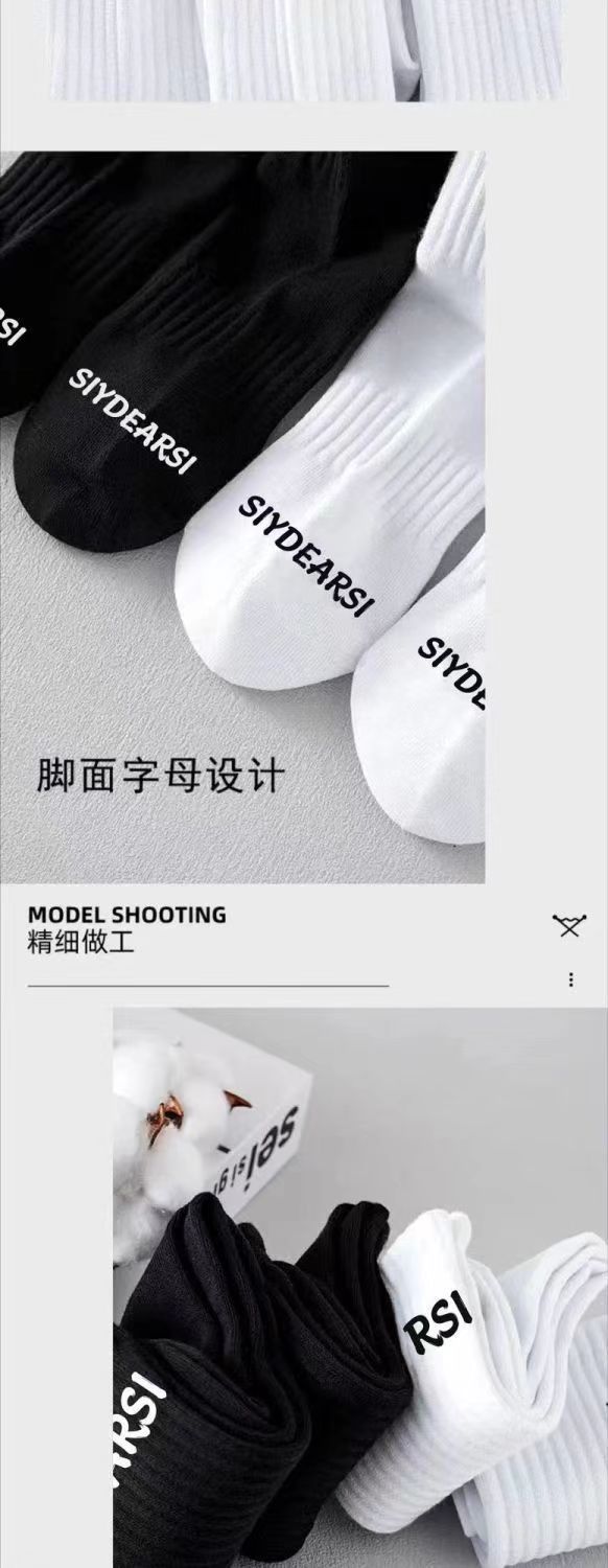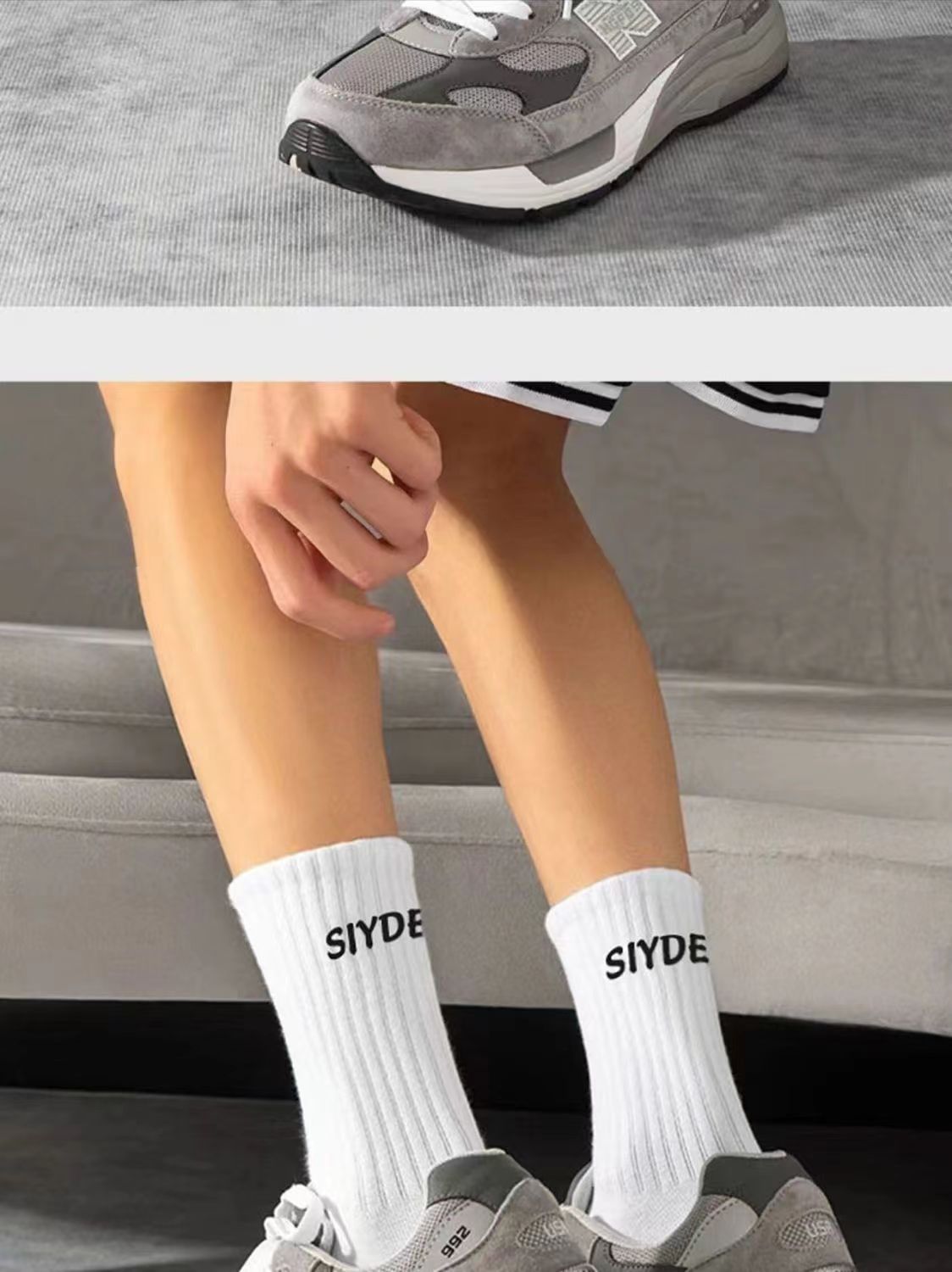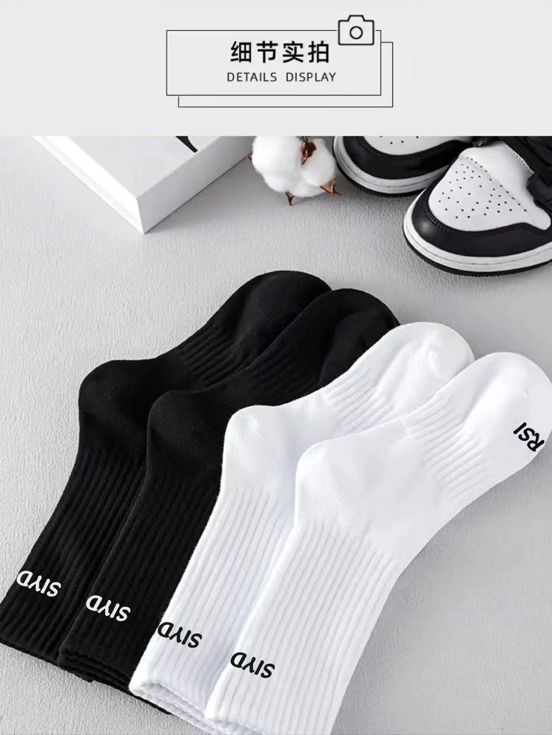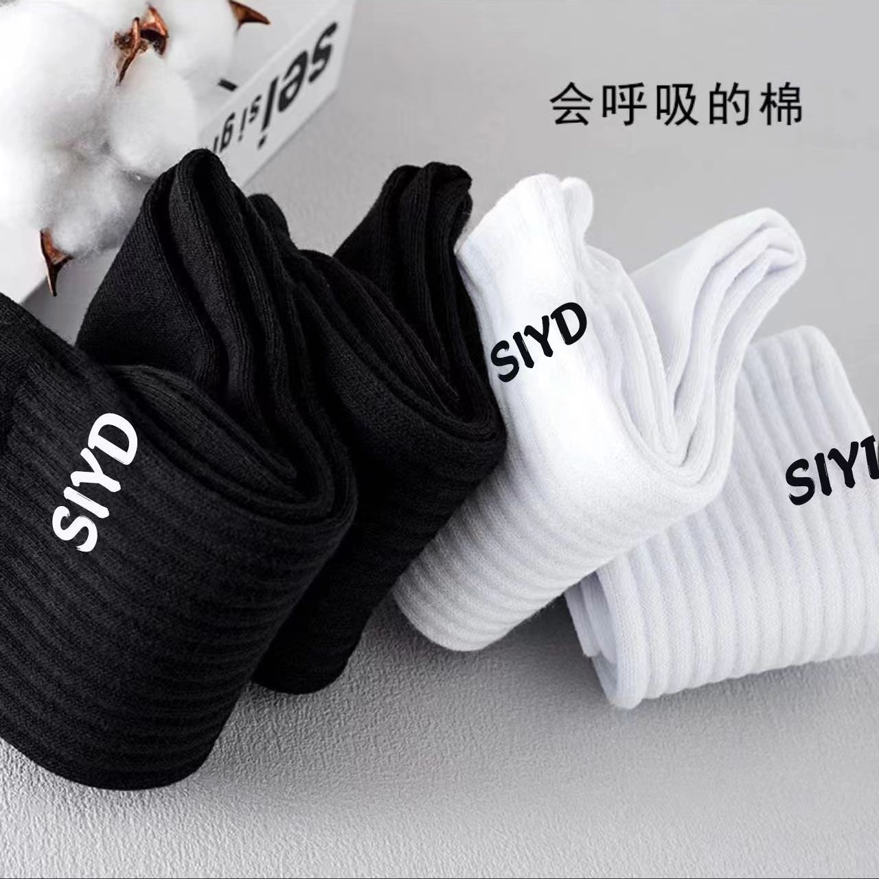 字母黑白棉男长筒袜高帮防臭吸汗秋冬学院风运动男生纯棉长袜百搭