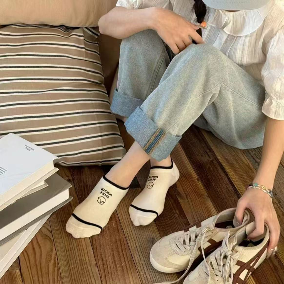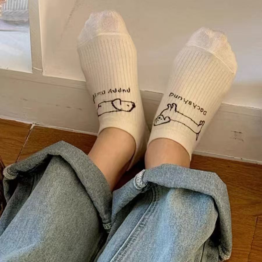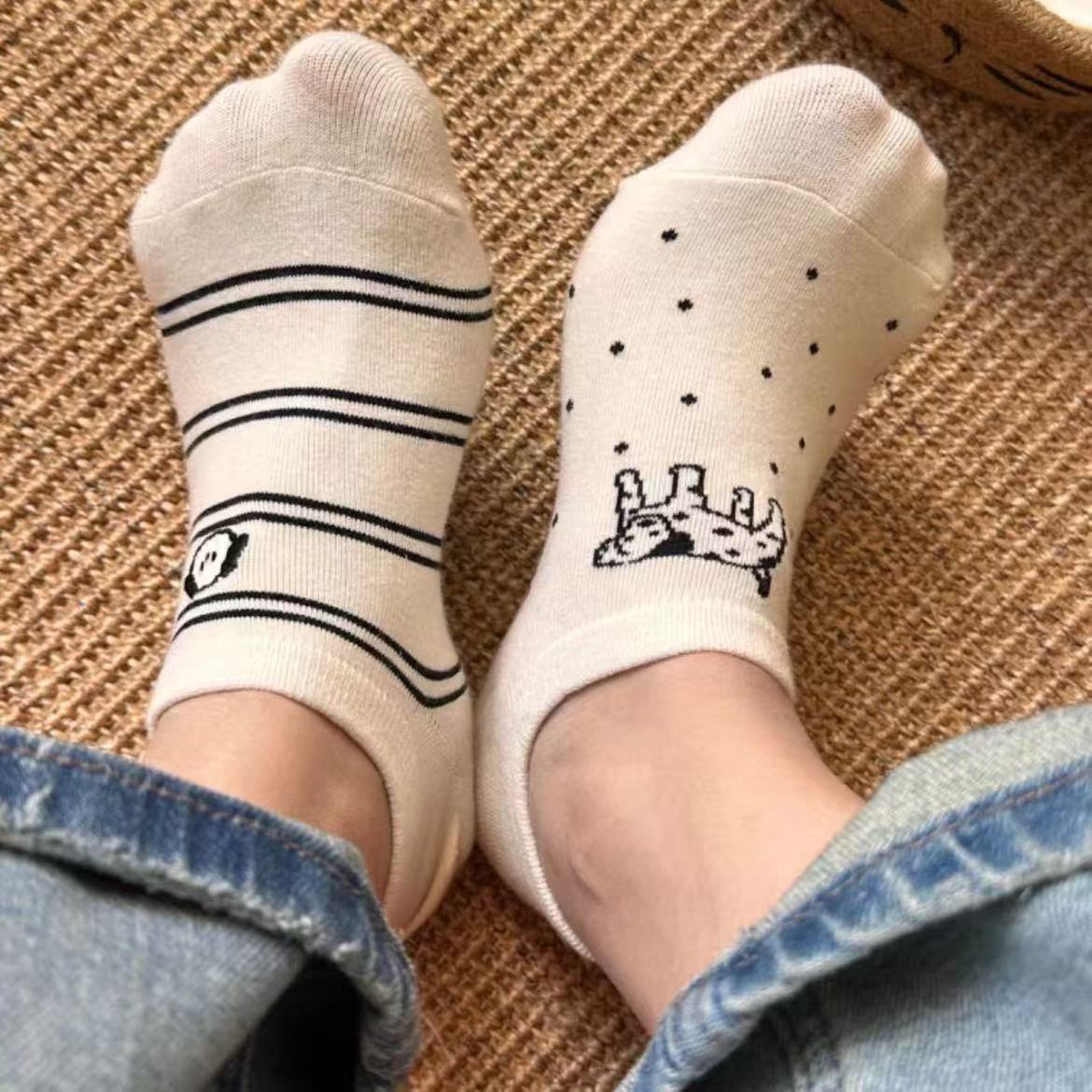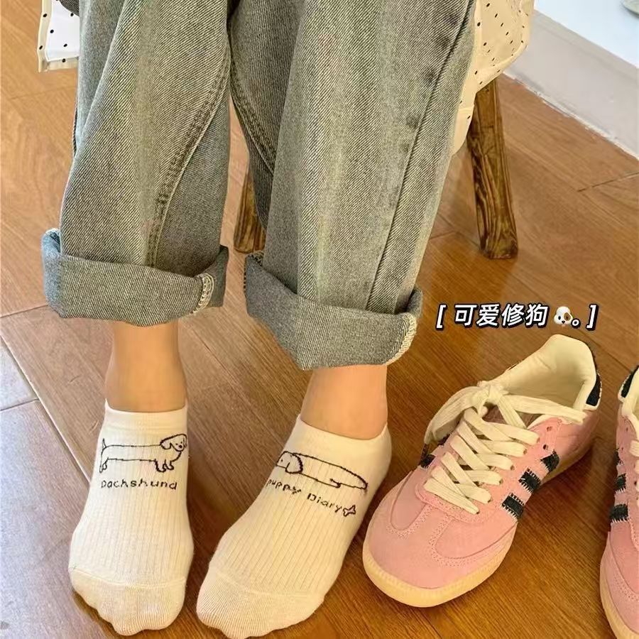 可爱小狗船袜女纯棉不掉跟防滑隐形袜夏季薄款袜子女浅口短袜夏天