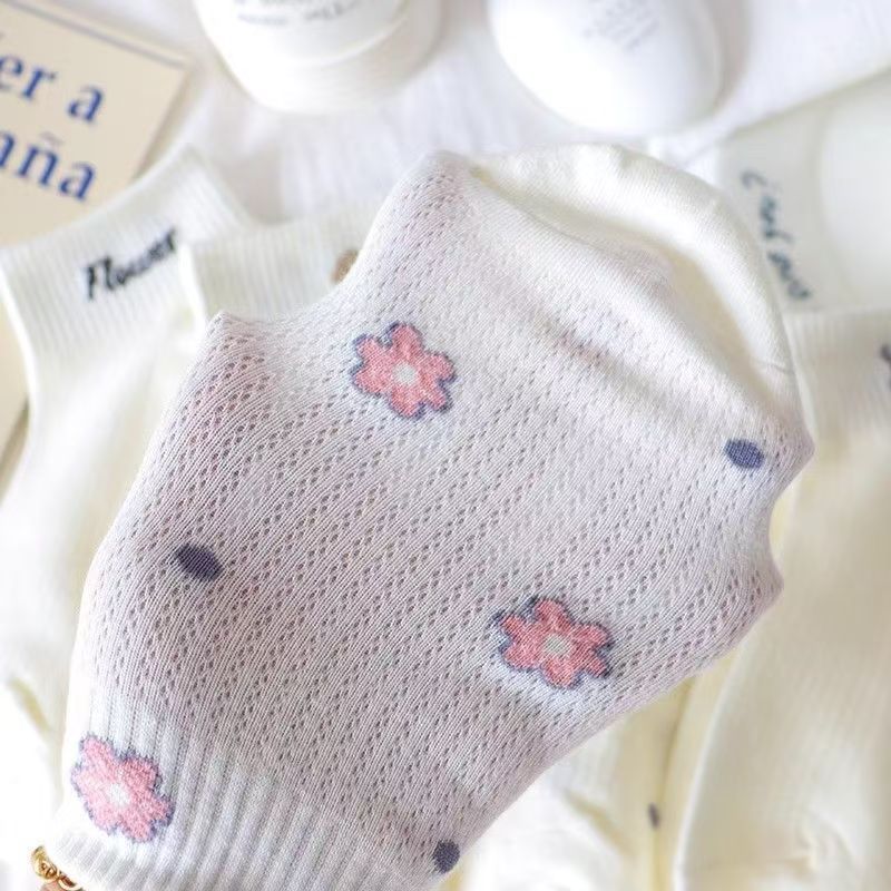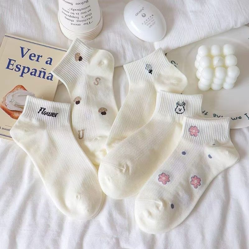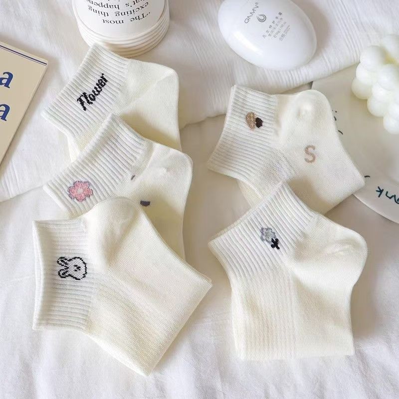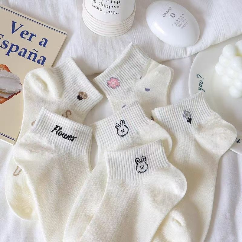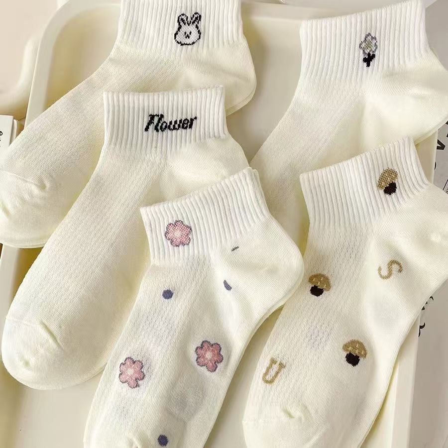 春夏新款学院风白色刺绣学生运动袜子批发 可爱透气舒适中筒袜薄