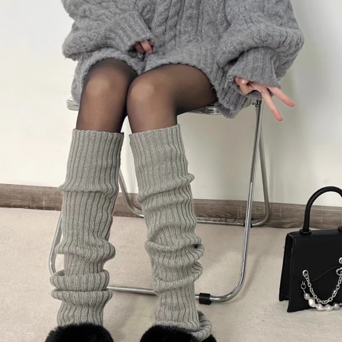 泰酷辣Lolita辣妹y2k针织堆堆腿套保暖袜子棕色jk袜套女款冬季