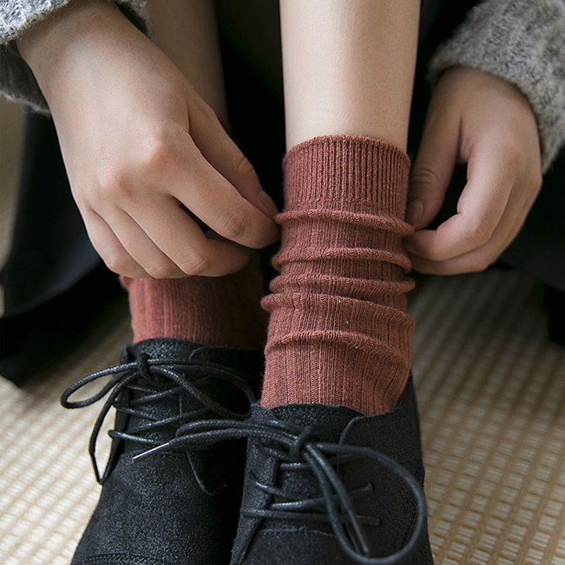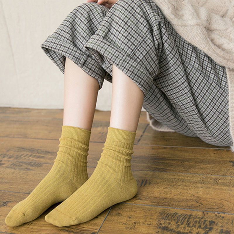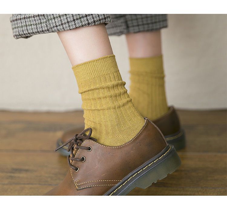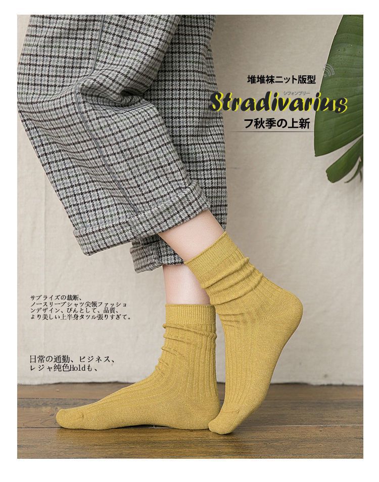 纯色 袜子韩版中筒袜春秋季纯色棉袜ins潮高筒袜长袜女士jk堆堆袜
