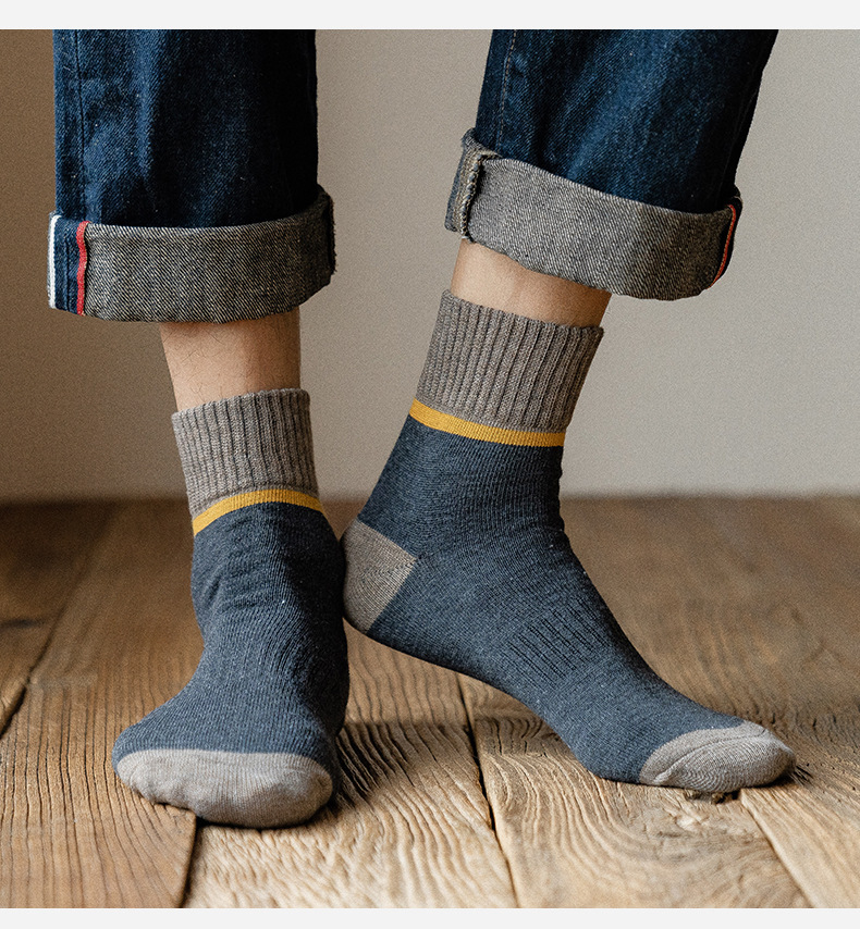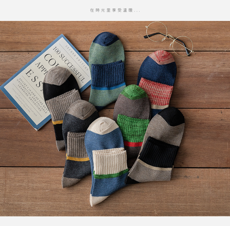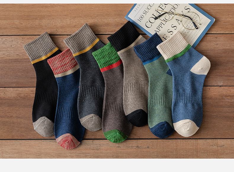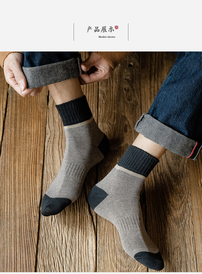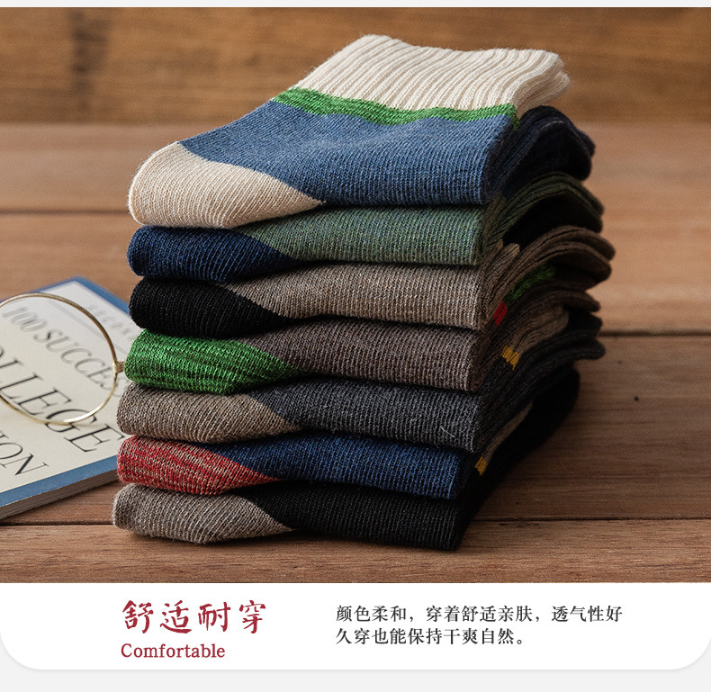 男士复古袜子中筒秋冬季男袜长筒休闲百搭保暖家居透气防臭运动