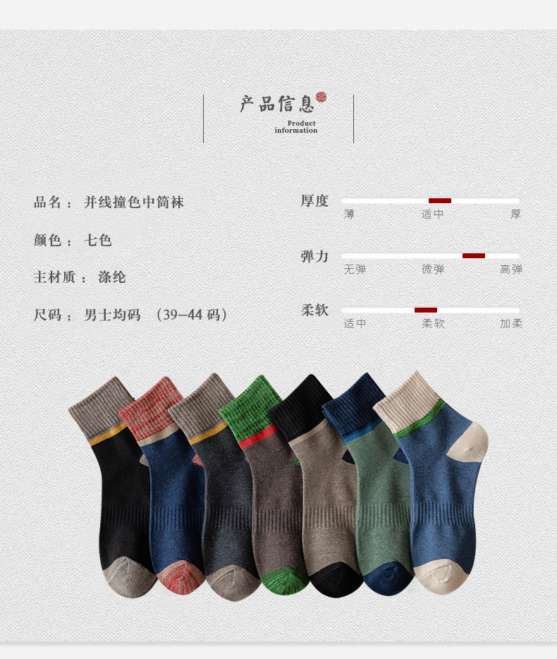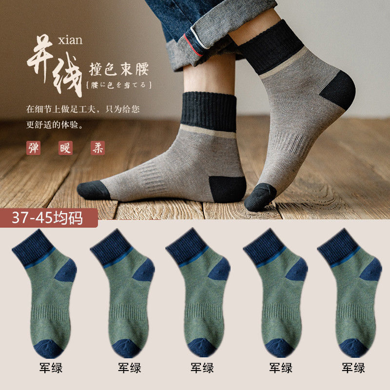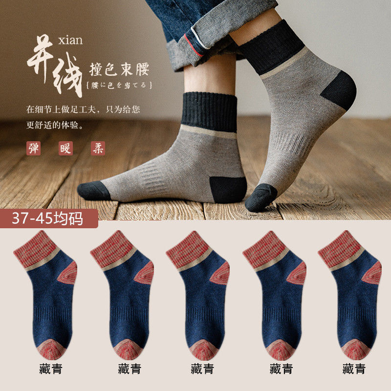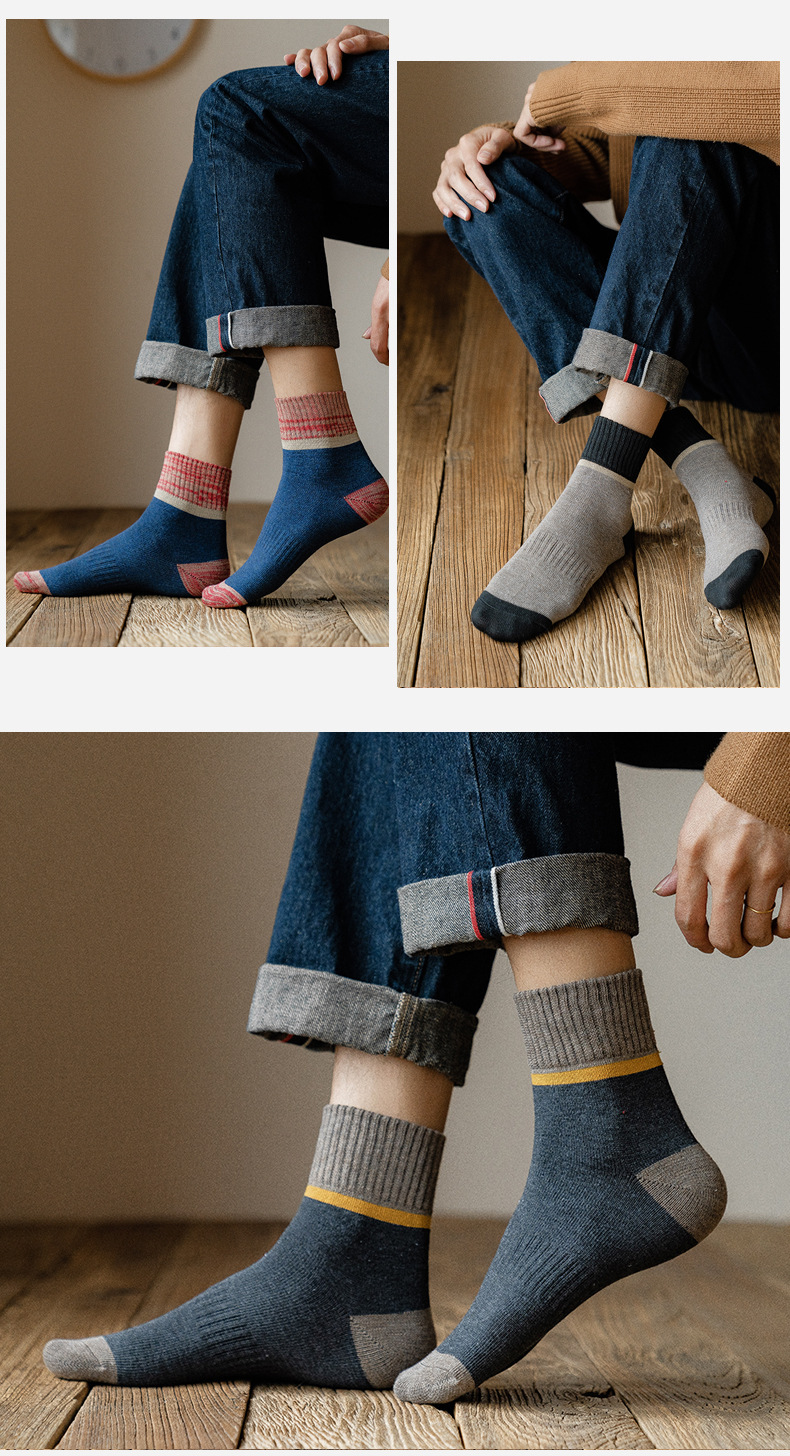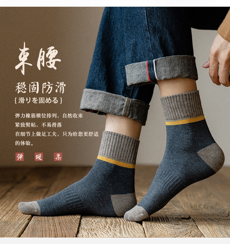 男士复古袜子中筒秋冬季男袜长筒休闲百搭保暖家居透气防臭运动