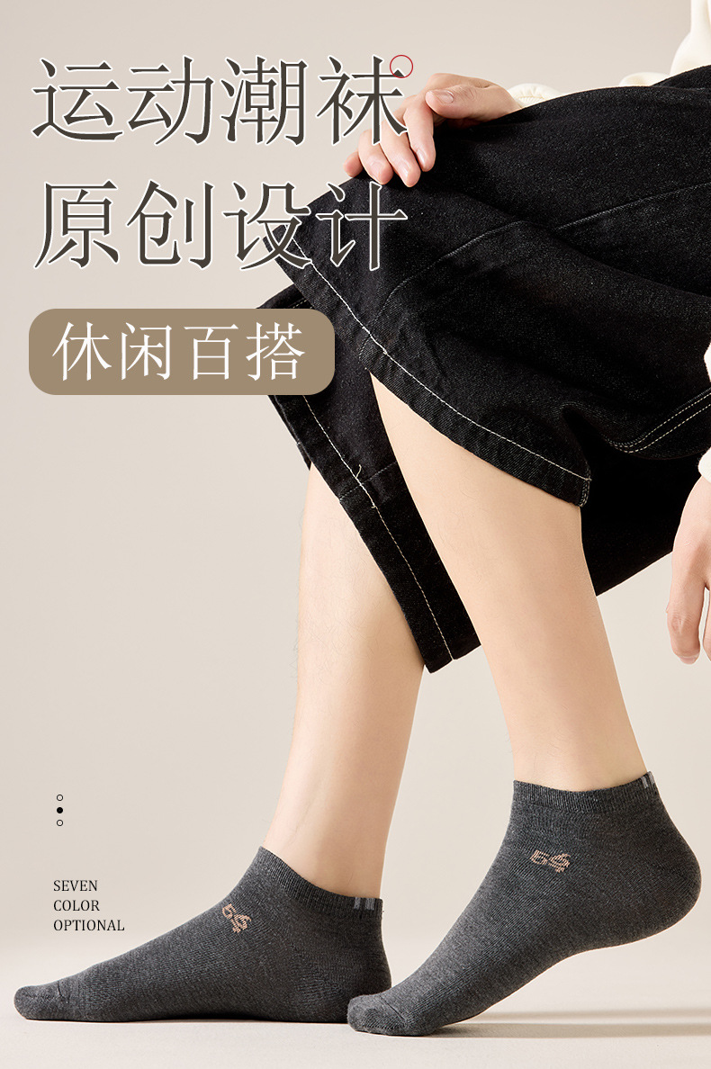 袜子男款短袜秋季无骨运动短筒透气男士船袜高颜值诸暨袜业潮批发