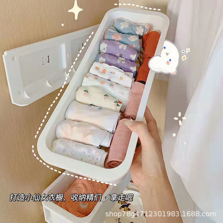 宿舍内衣收纳盒抽屉式收纳神器免打孔衣柜内裤袜子壁挂整理储物盒