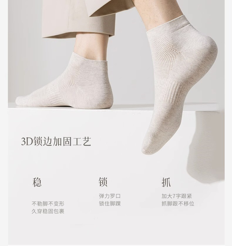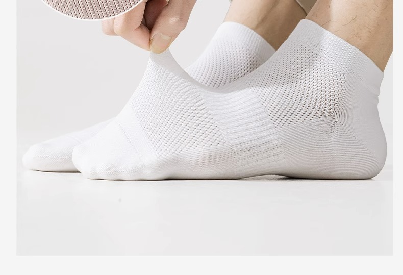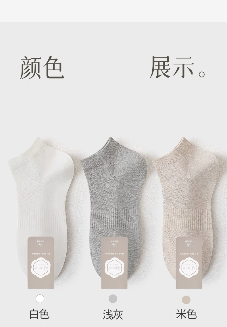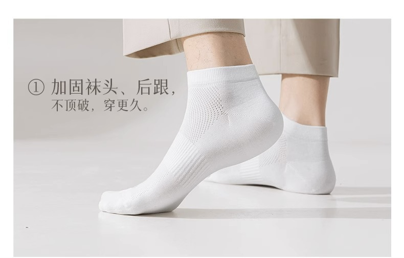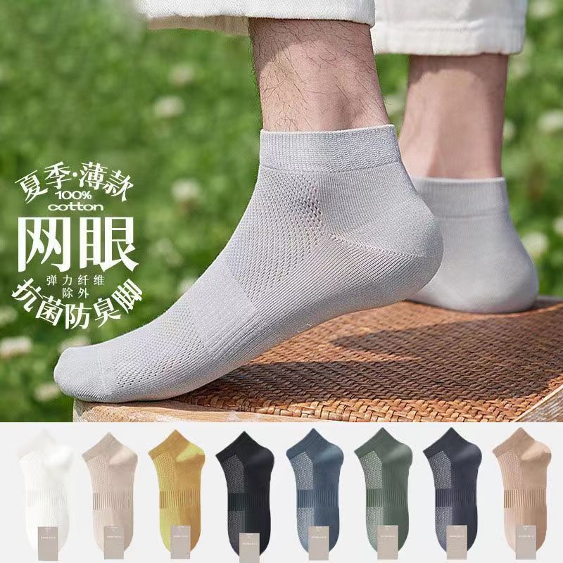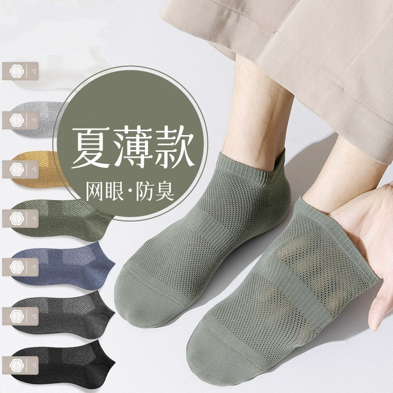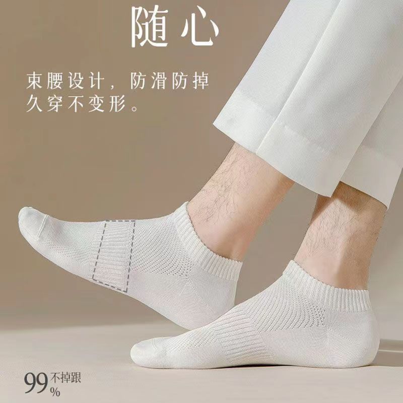 2024春秋新款袜子纯色男网眼按摩底白色吸汗无骨船袜隐形休闲短袜