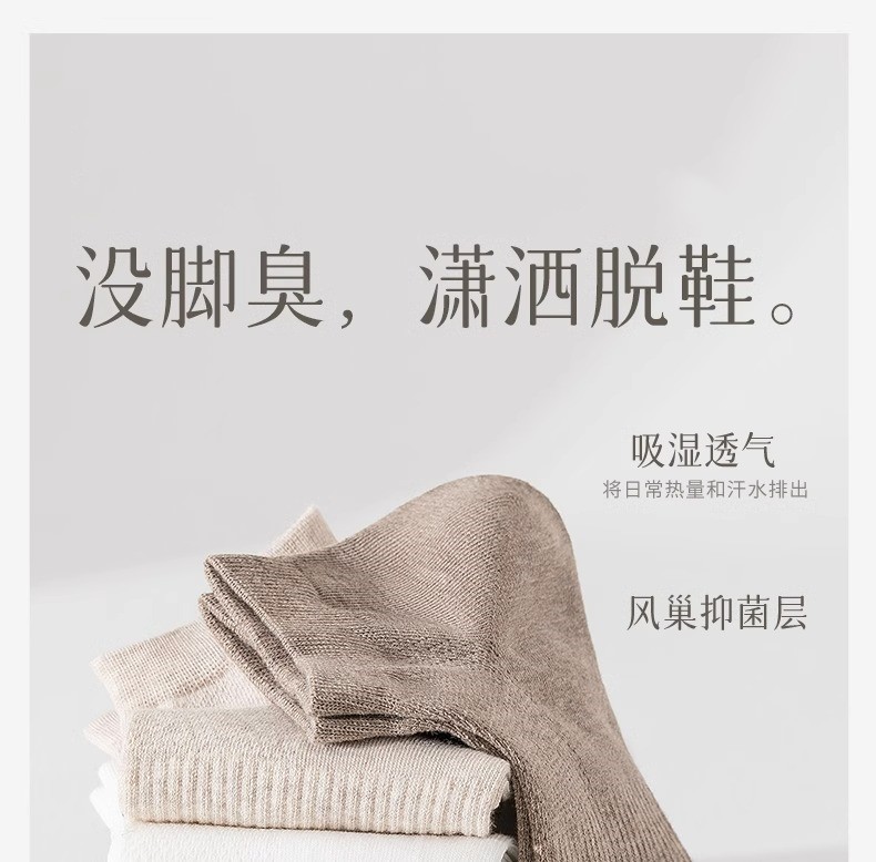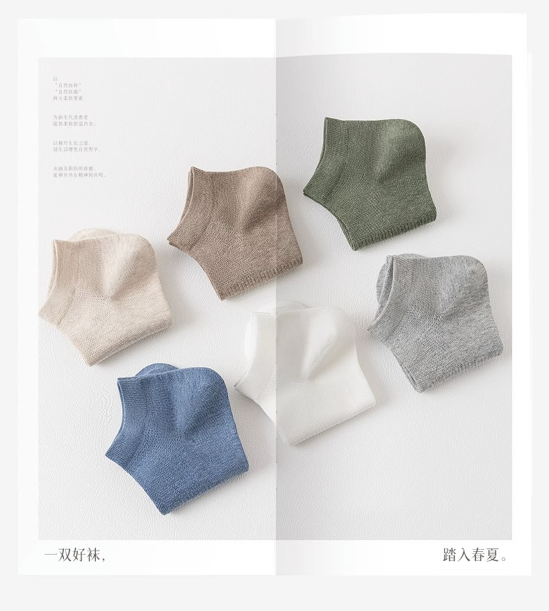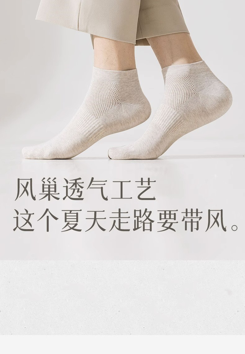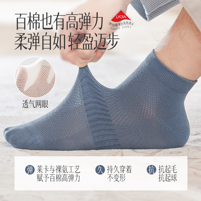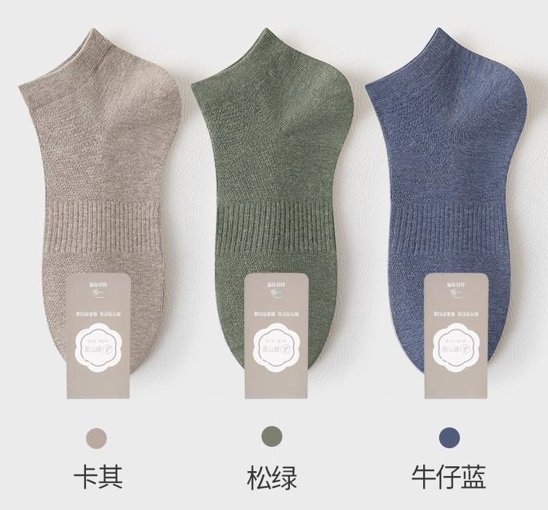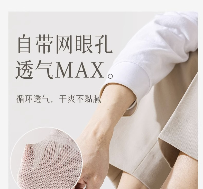 2024春秋新款袜子纯色男网眼按摩底白色吸汗无骨船袜隐形休闲短袜