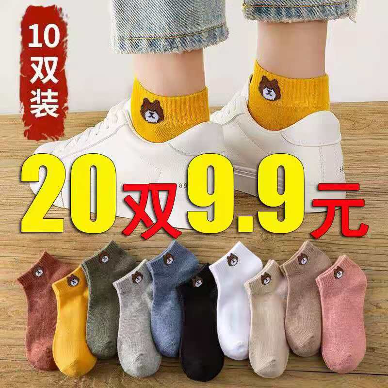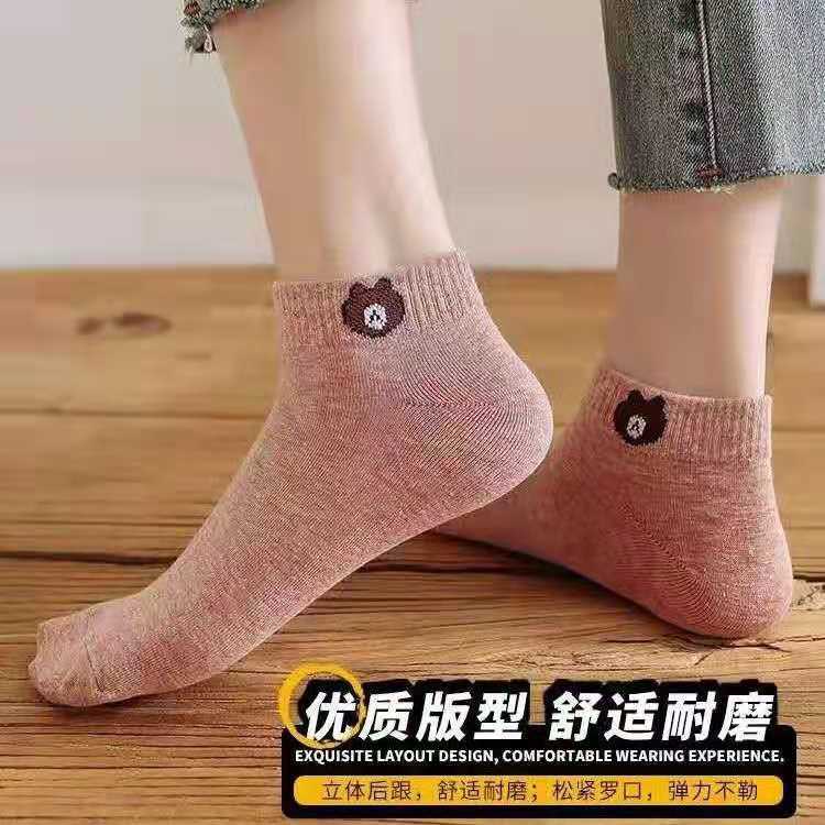 诸暨袜业批发外贸泰国小熊短袜袋装浅口低帮春夏季薄款透气船袜子