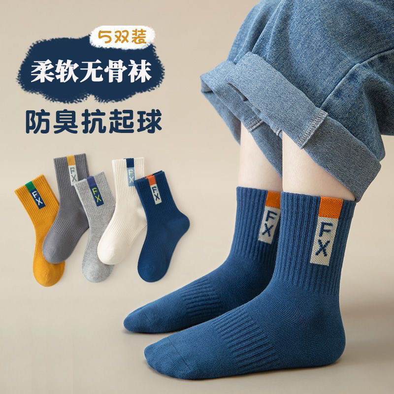 儿童袜子秋冬款中筒袜男孩运动袜中大童春秋季男童袜子小孩袜子
