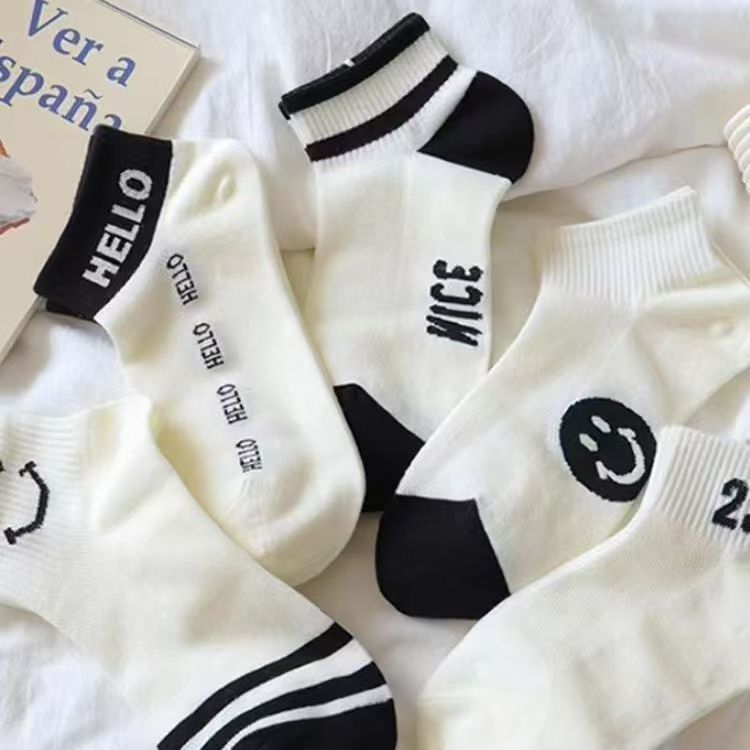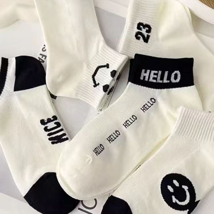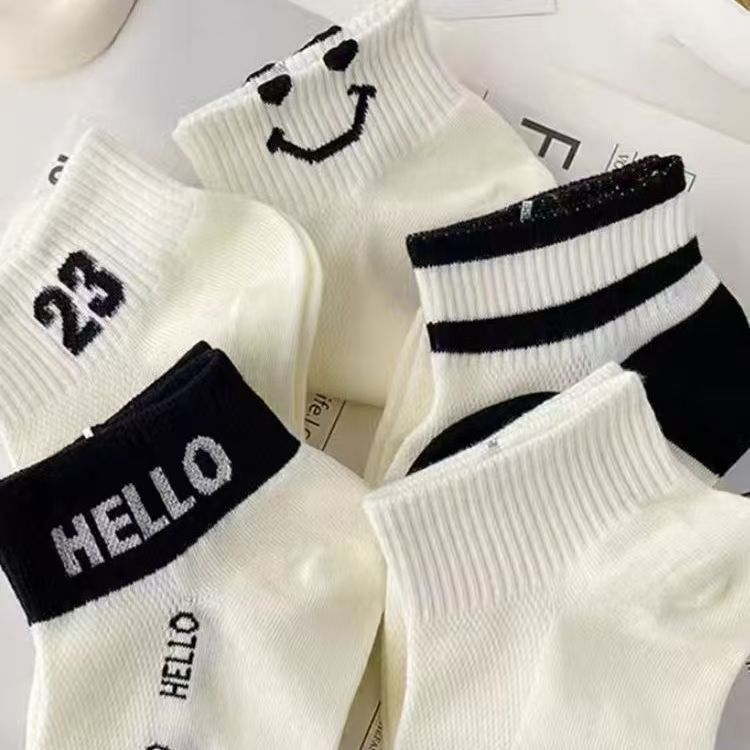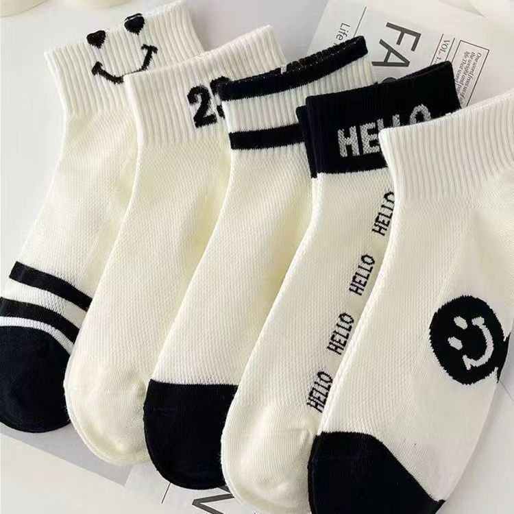 袜子女短袜夏季薄款网眼透气短筒袜春夏浅口绿色小熊字母潮船袜