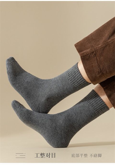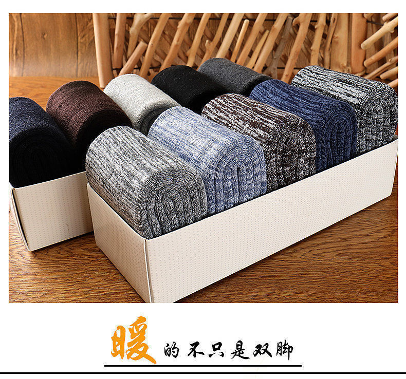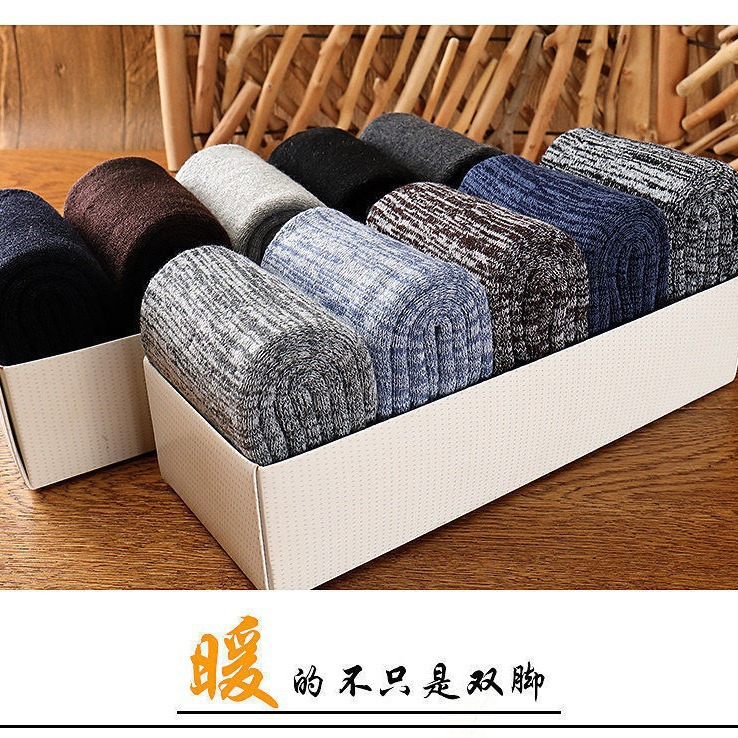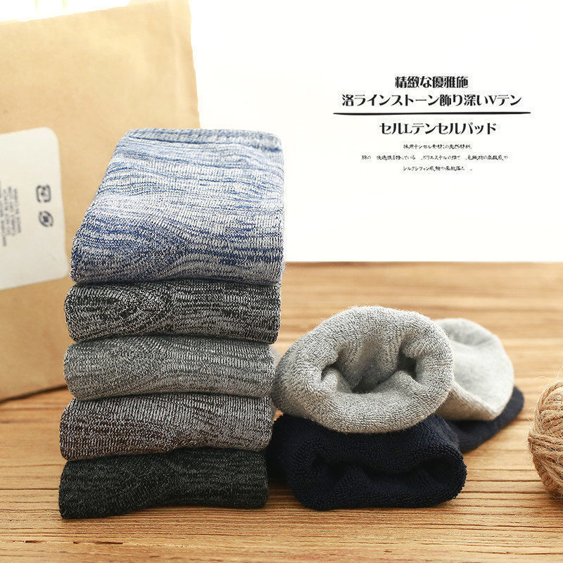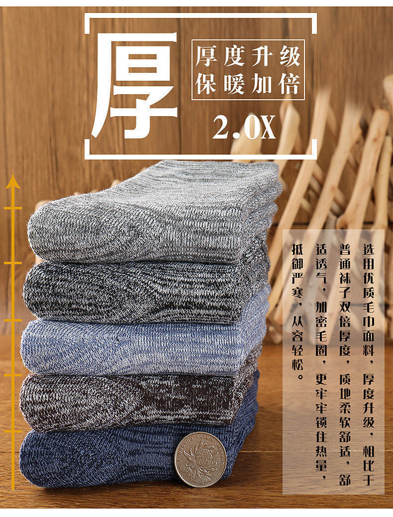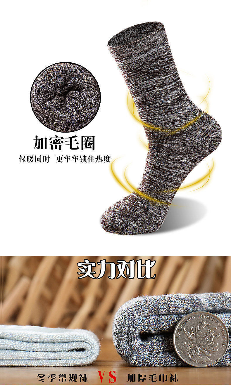 毛圈袜子男秋冬季加绒加厚保暖中筒超厚吸汗运动袜冬款长筒毛巾袜