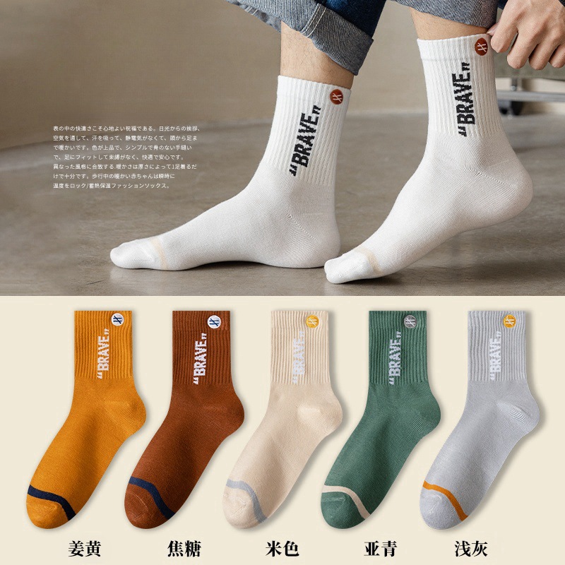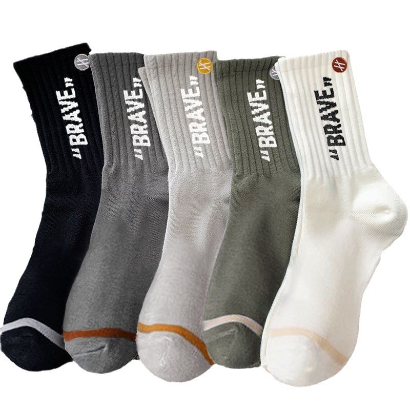 长筒袜子男秋冬中筒非棉袜防臭吸汗男生纯色运动潮流篮球短袜批发