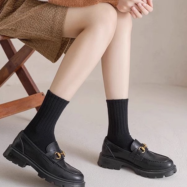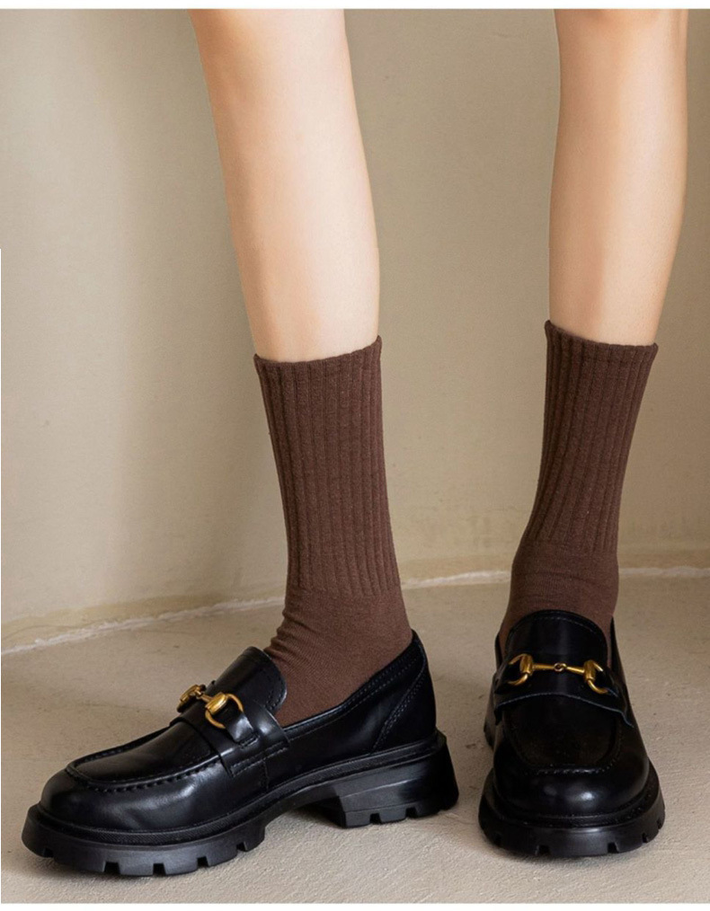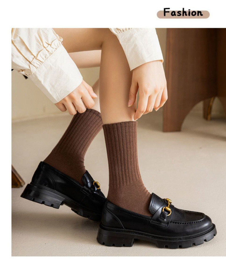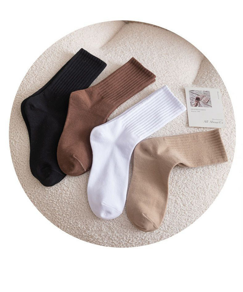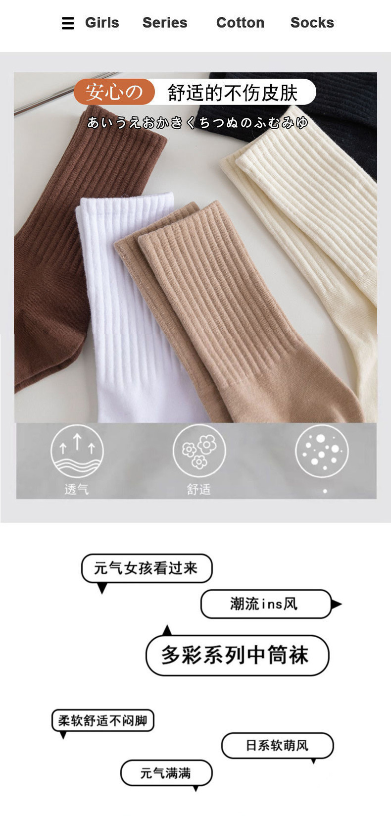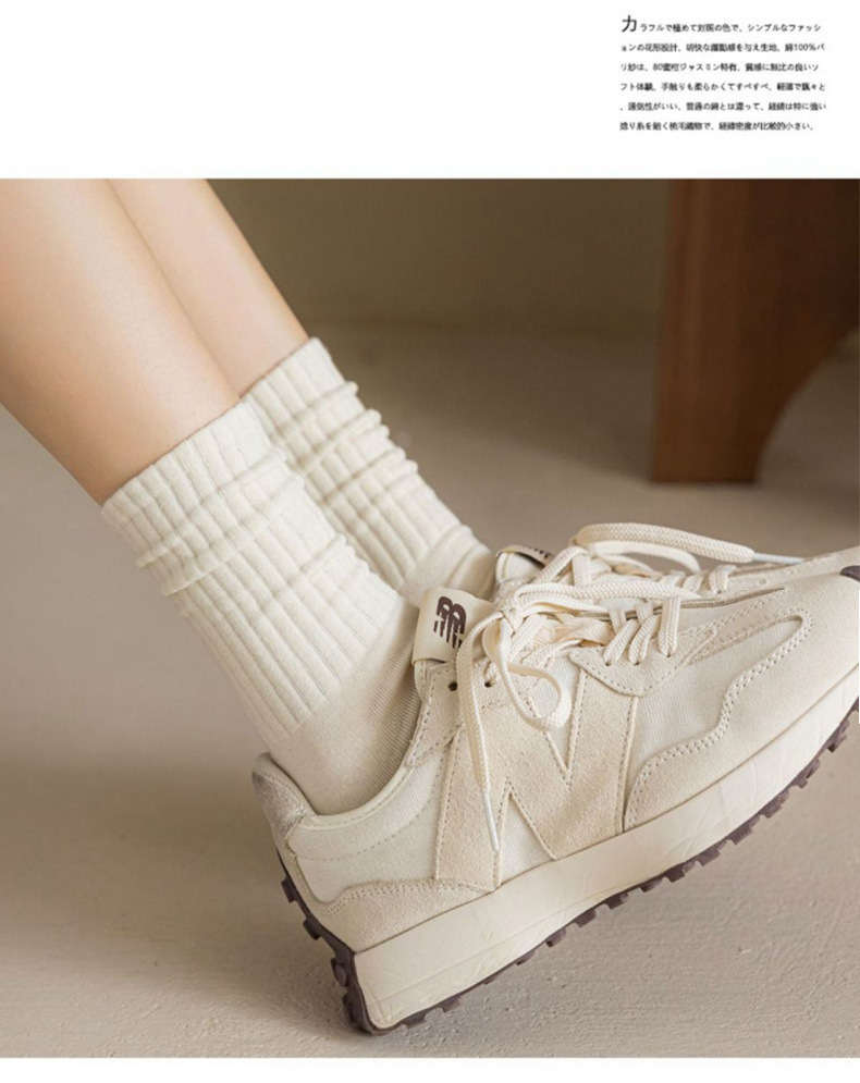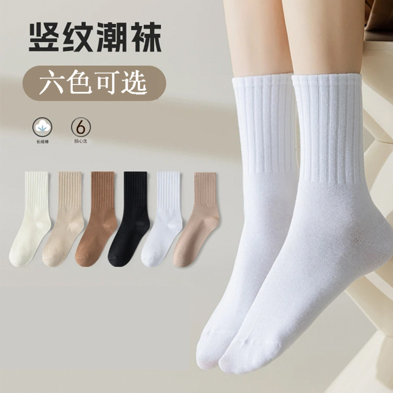 白袜子 袜子女秋冬中筒纯色月子袜女士网红潮袜学生运动袜 堆堆袜