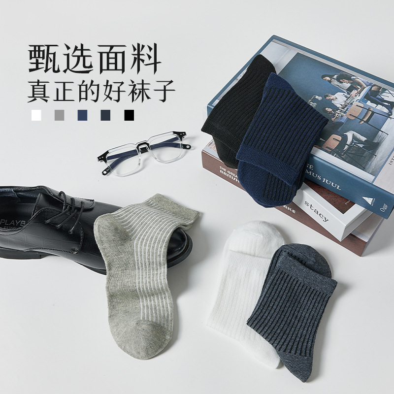 男士棉柔吸汗透气秋冬季中高筒休闲商务袜子批发诸暨男袜潮防臭袜