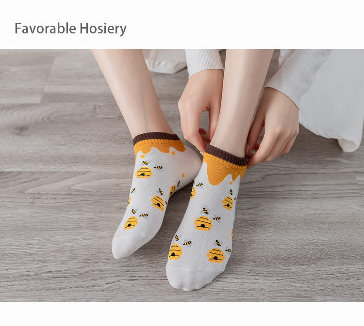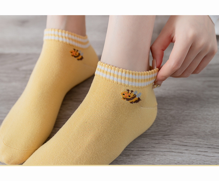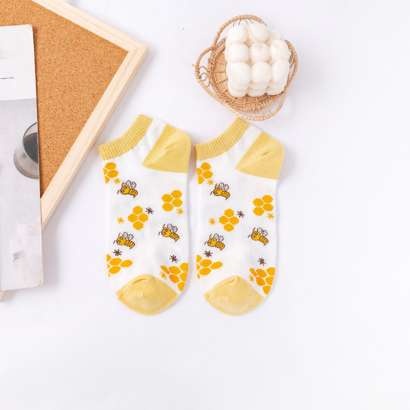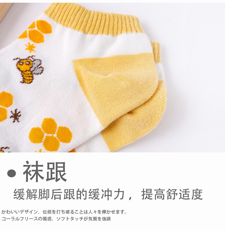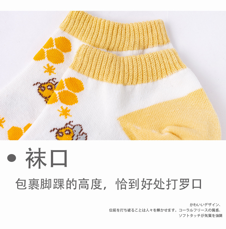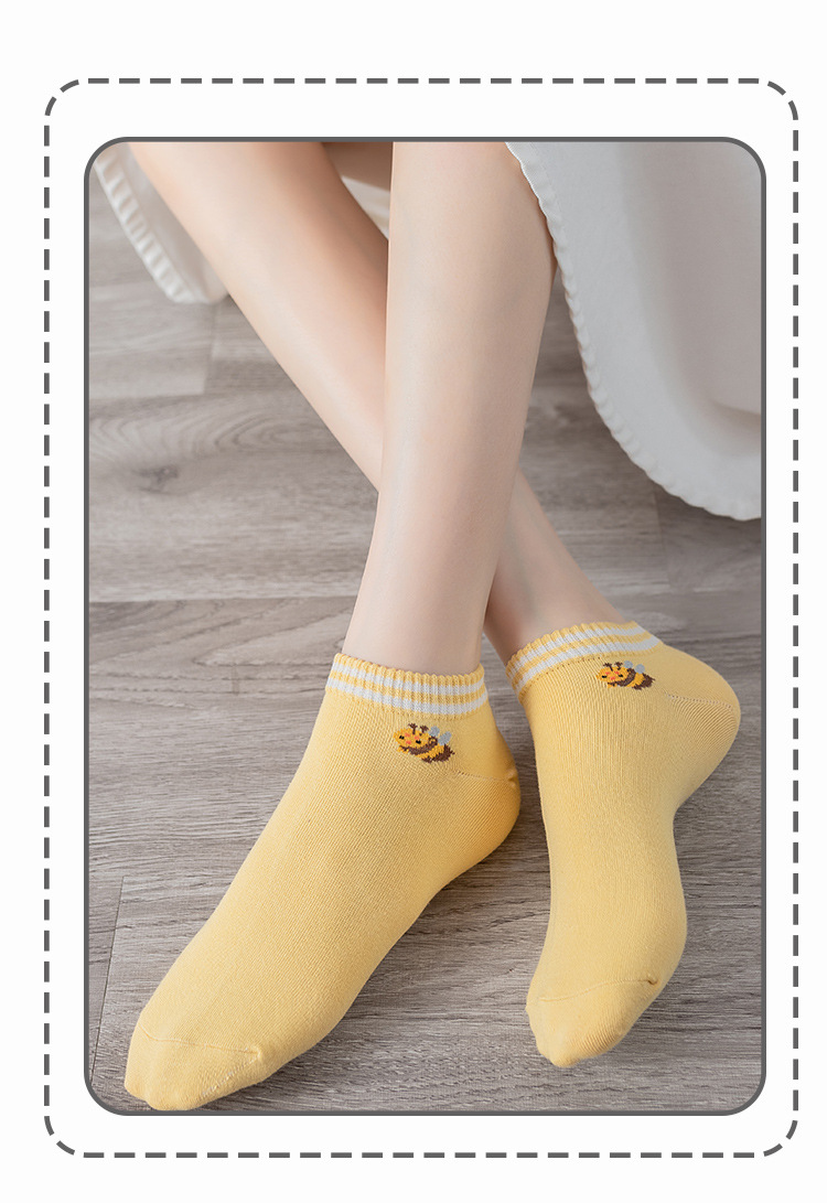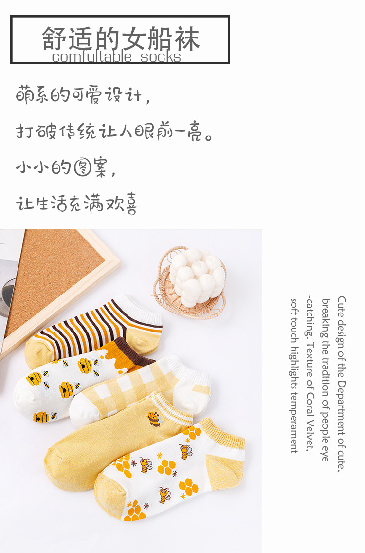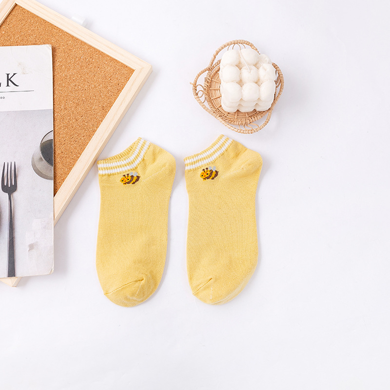 诸暨袜业生产小蜜蜂黄色系春秋季节浅口低帮短筒船袜子ins潮女袜