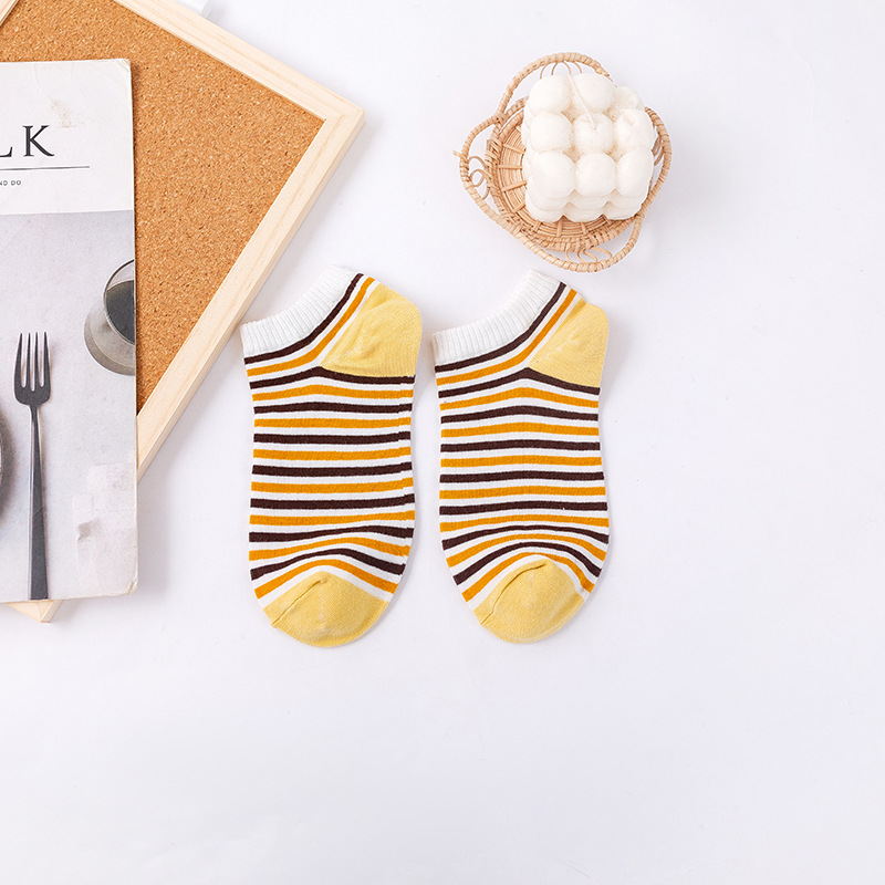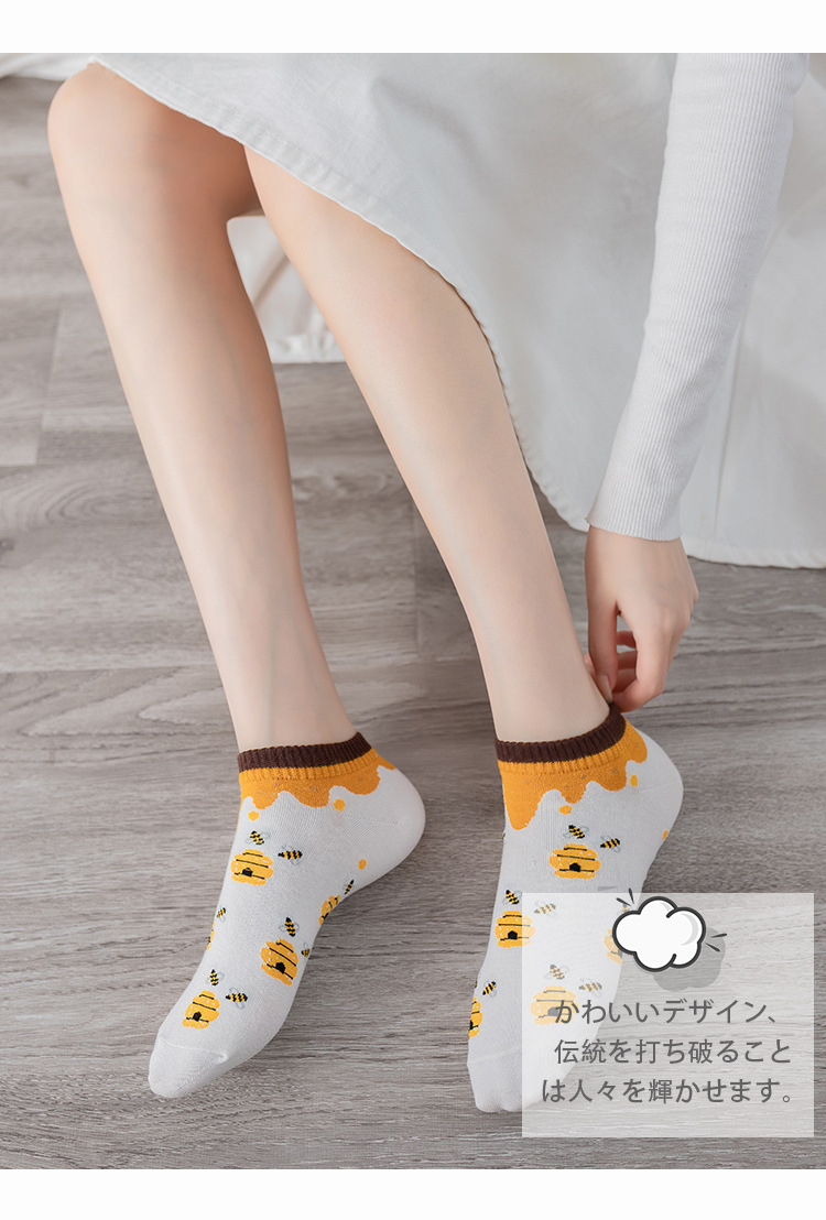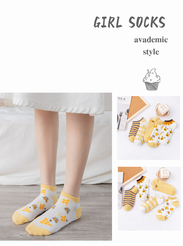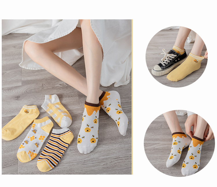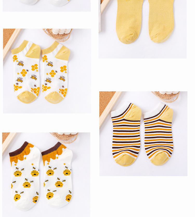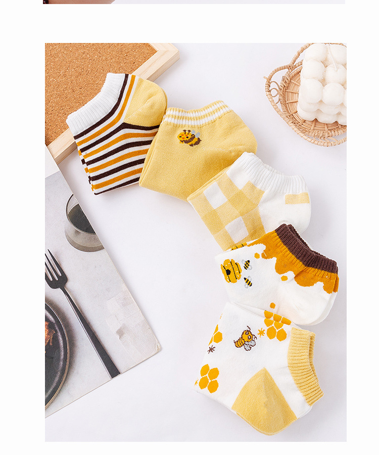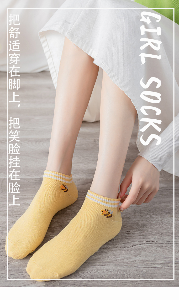 诸暨袜业生产小蜜蜂黄色系春秋季节浅口低帮短筒船袜子ins潮女袜