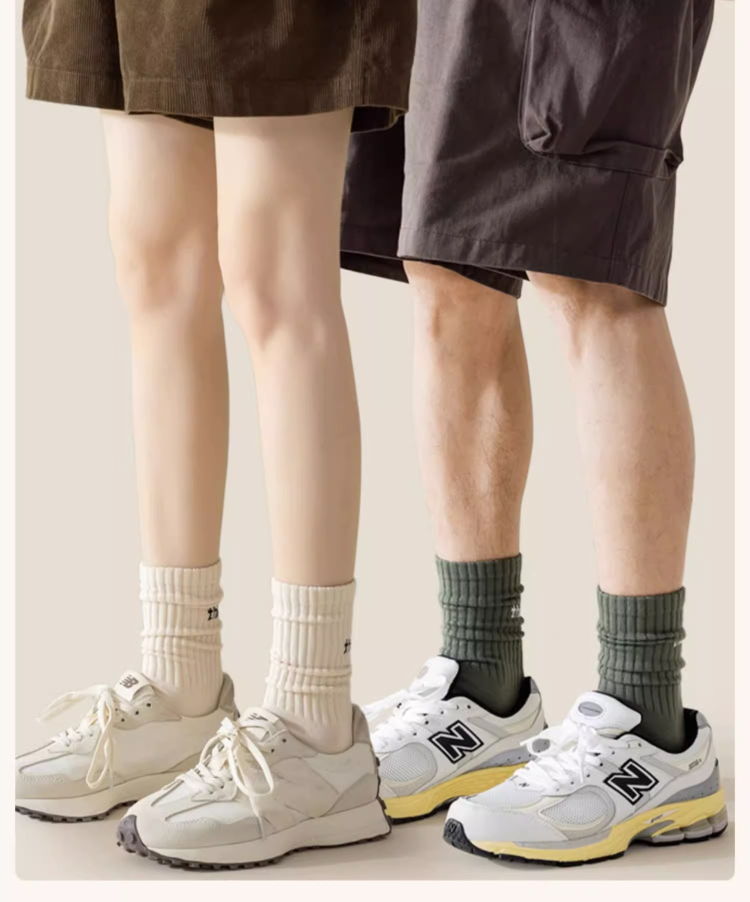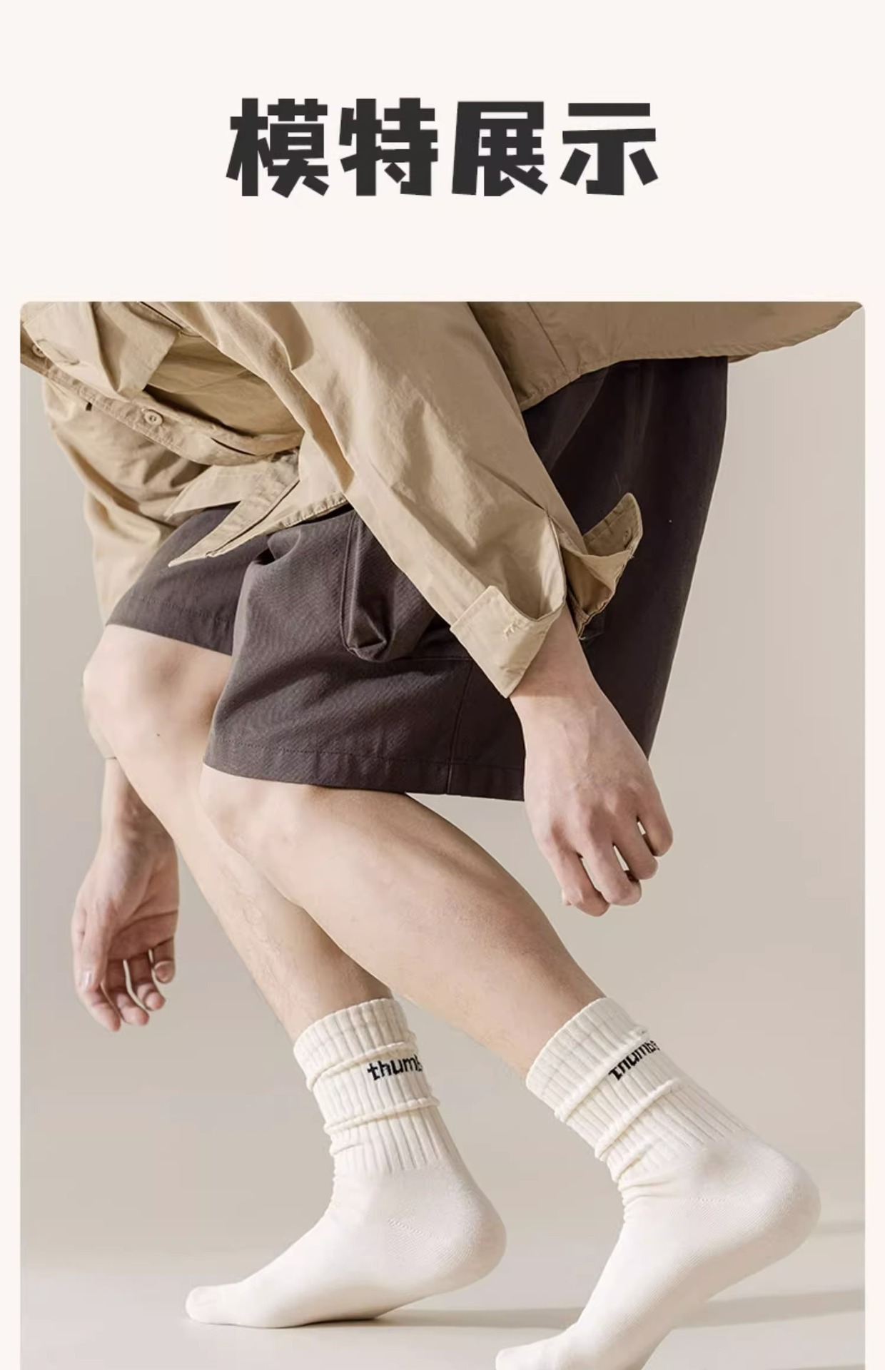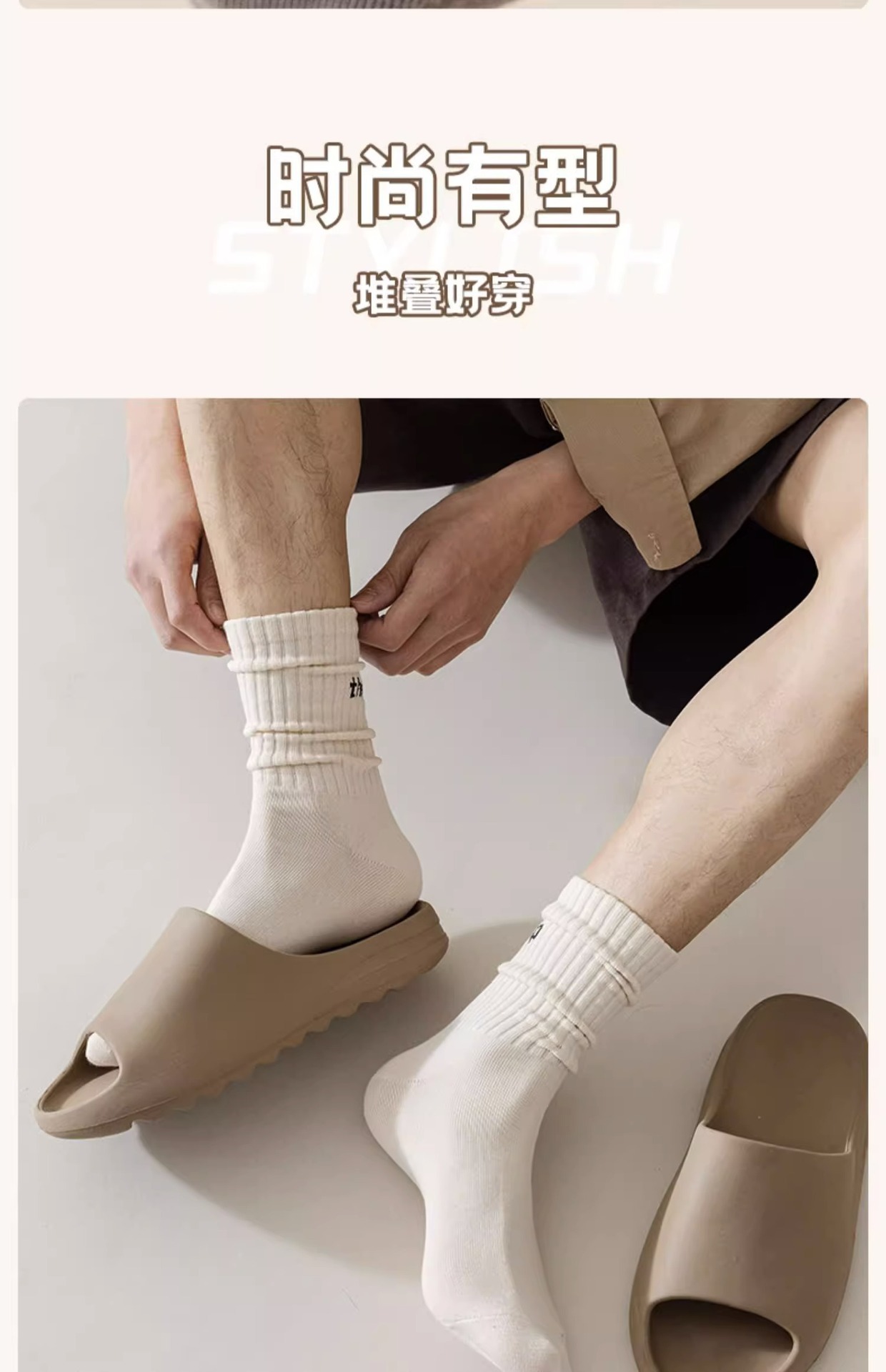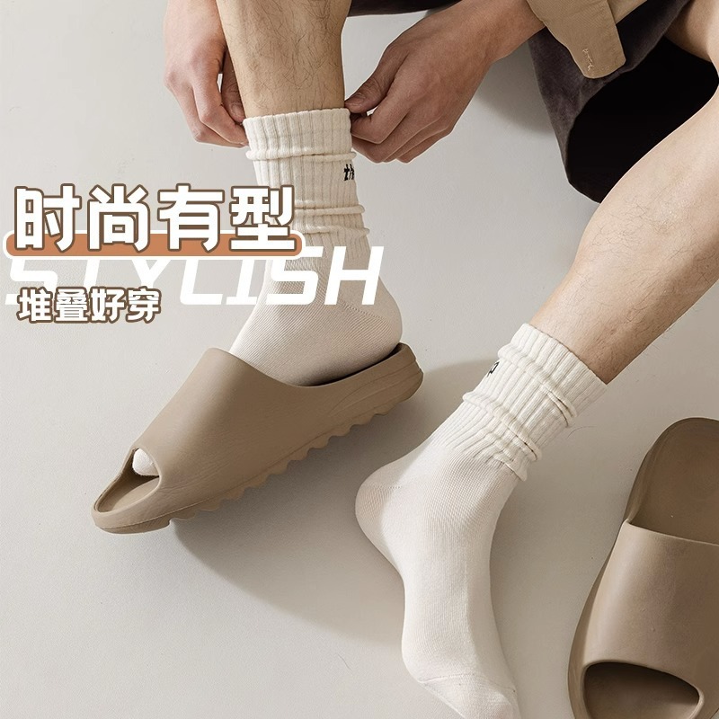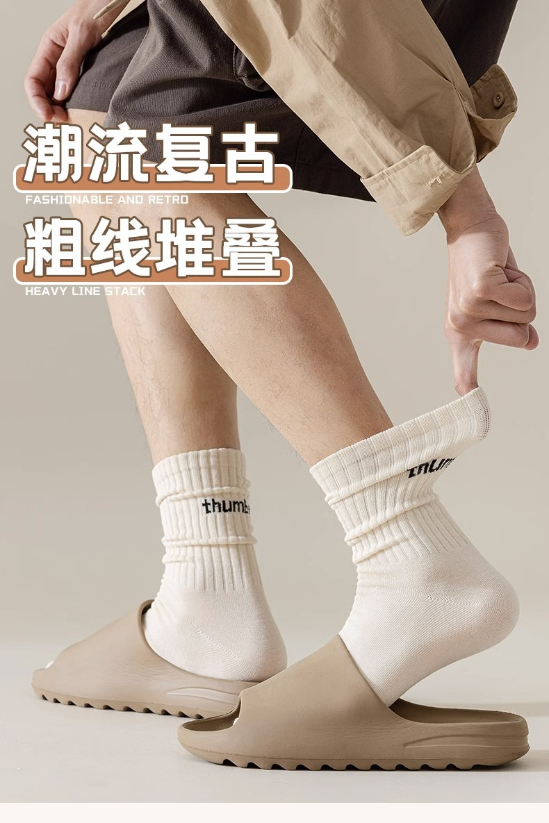 潮流 复古男中筒袜子男士ins日系百搭堆堆袜春秋防臭字母运动长袜