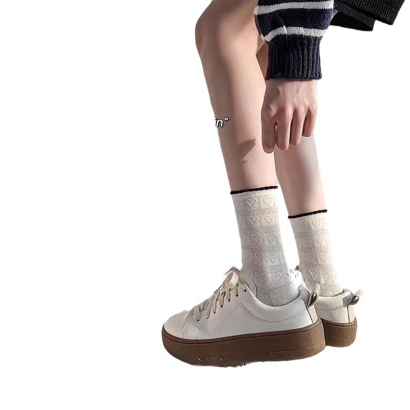 春秋四季纯白色日系暗花女简约中筒袜诸暨袜业厂家批发女生潮袜黑