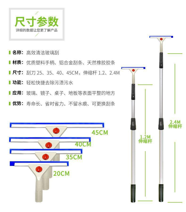清洁器硅胶蓝擦窗刮水器家用伸缩杆双面器镜子玻璃刮水器保洁专用