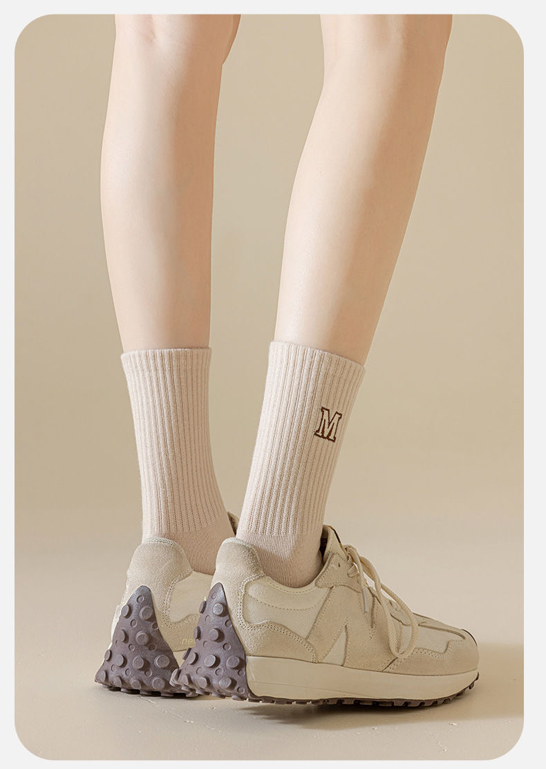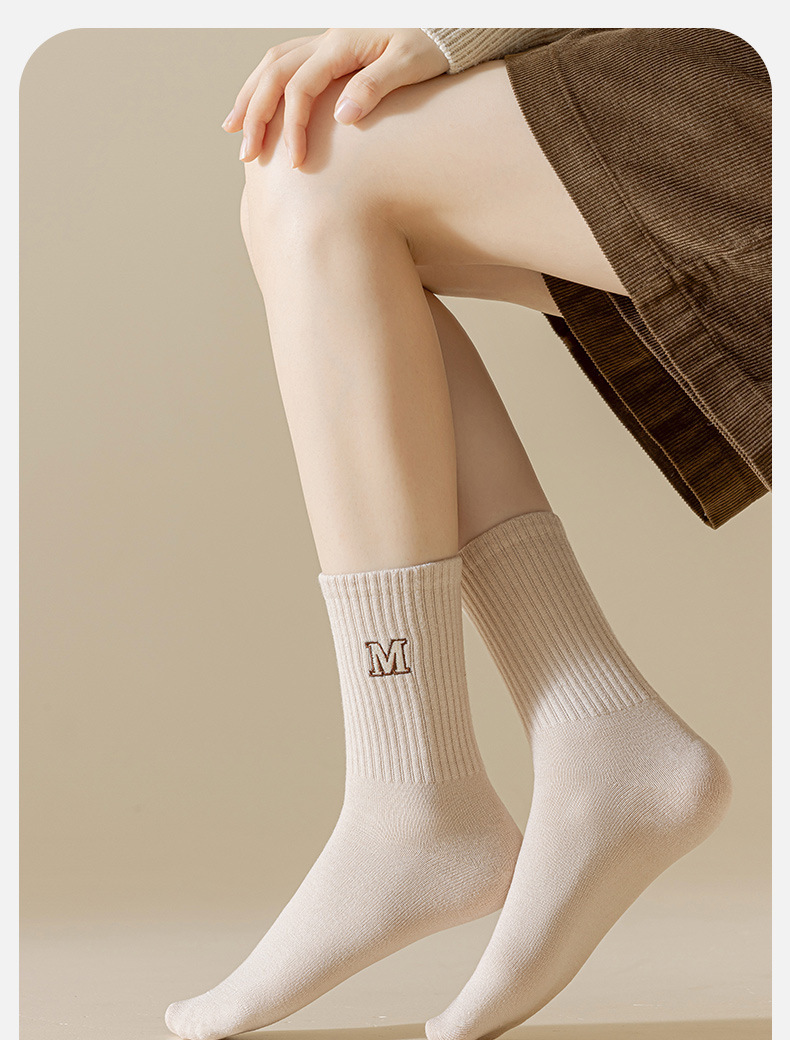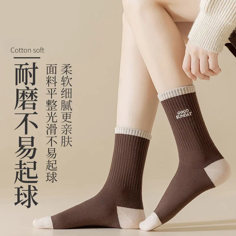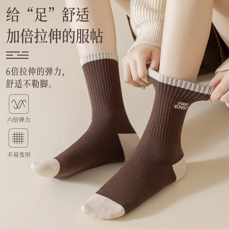 袜子女秋冬中筒袜女日系纯色堆堆袜ins潮束腰运动袜黑白色长筒袜