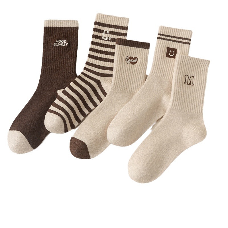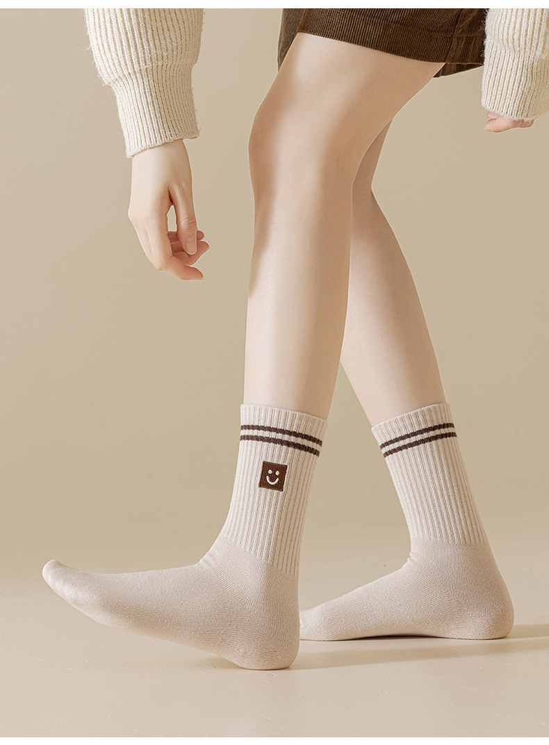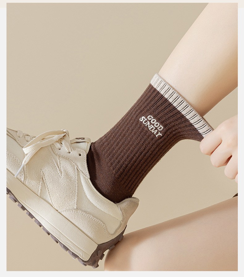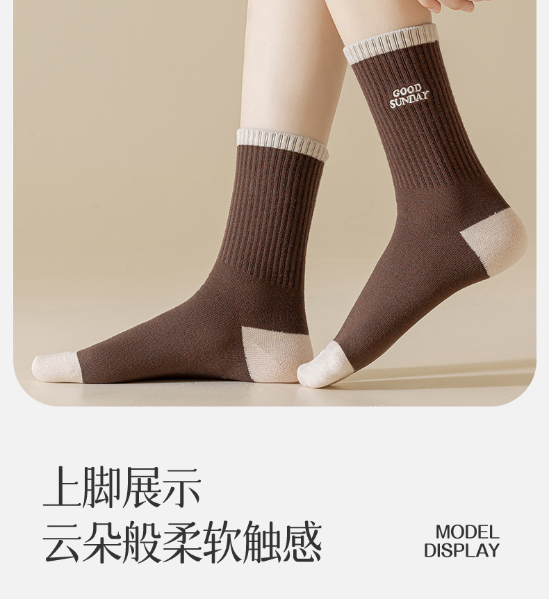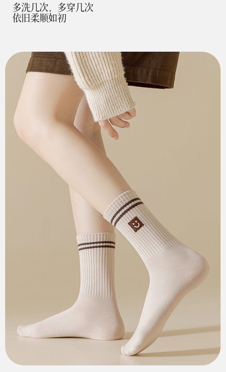 袜子女秋冬中筒袜女日系纯色堆堆袜ins潮束腰运动袜黑白色长筒袜