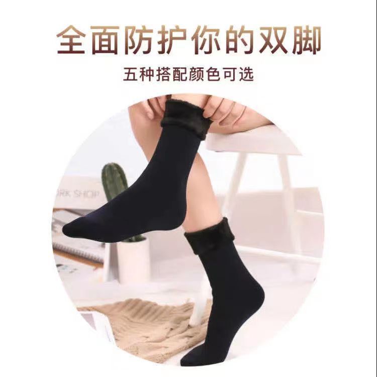 冬季女士加绒加厚防寒保暖雪地袜子诸暨厂家货源批发毛圈地板男袜