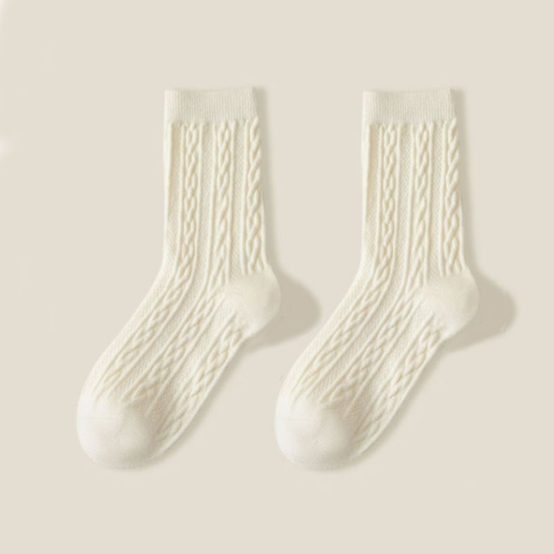 JK袜子女可爱白色中筒袜纯色麻花学生lolita洛丽塔日系秋天冬天