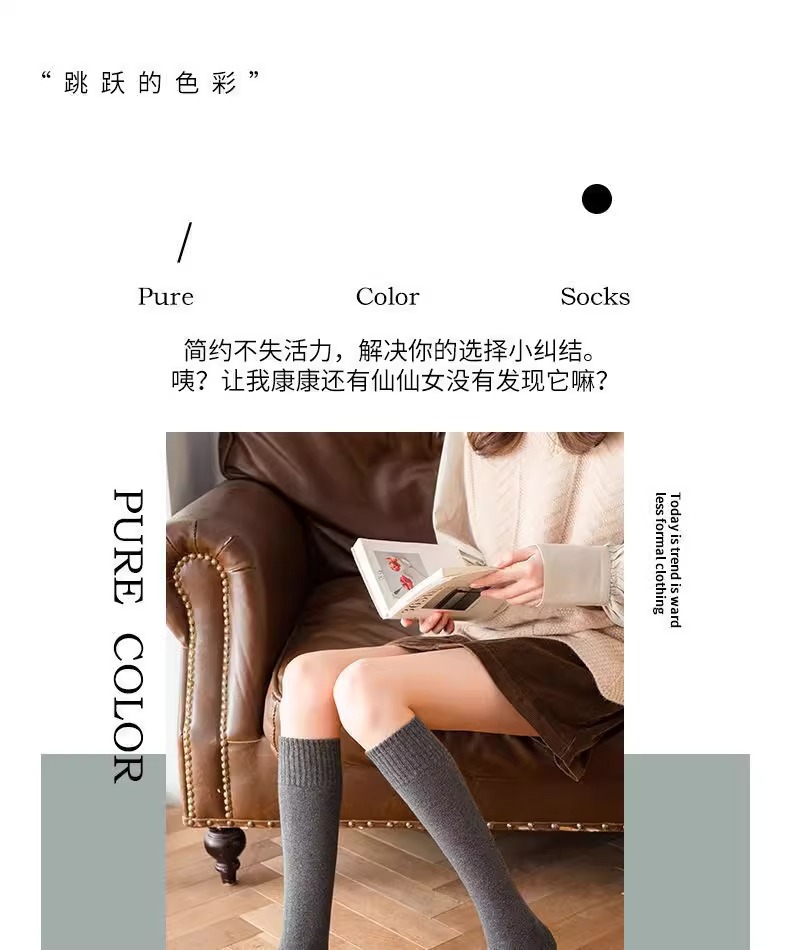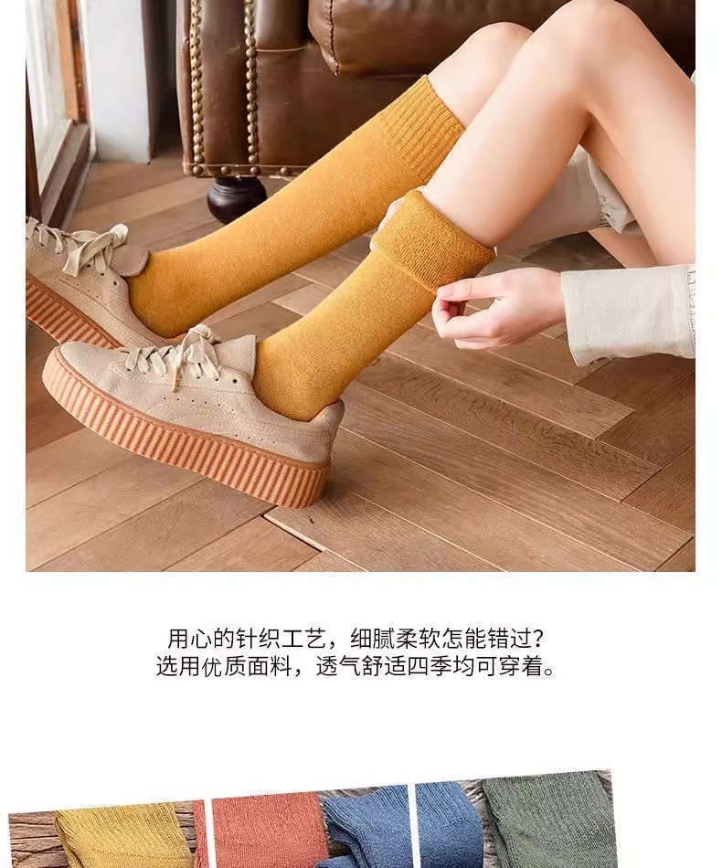 时尚袜子女中筒秋冬季休闲百搭高筒jk袜秋加厚小腿袜潮日系堆堆