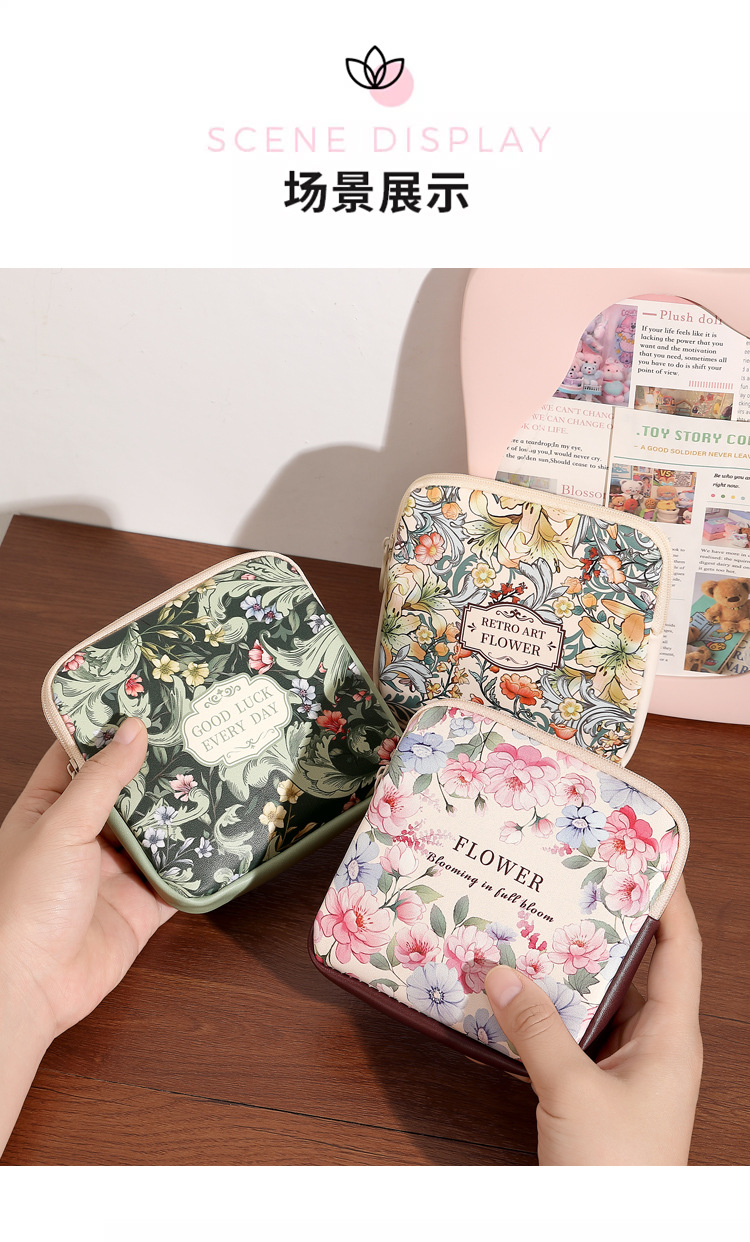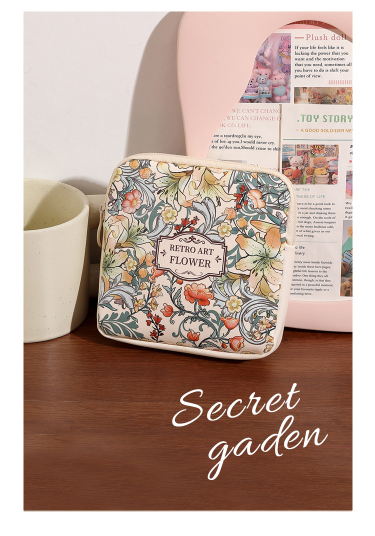梵高油画随身零钱包耳机数据线收纳小包口红袋大容量便携月事包女