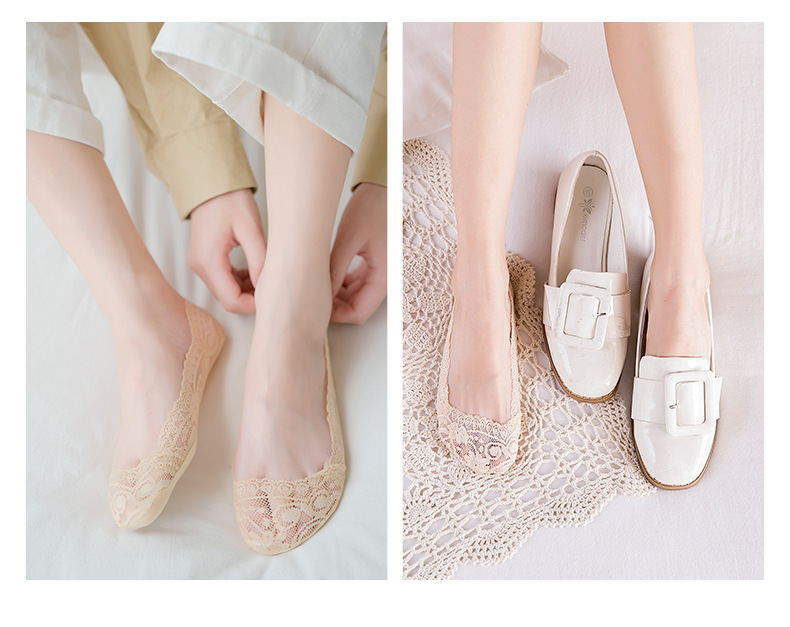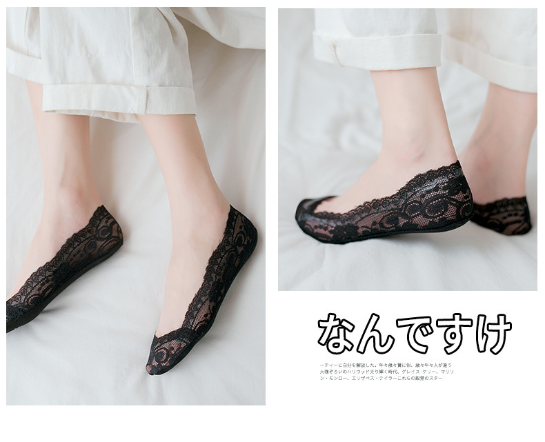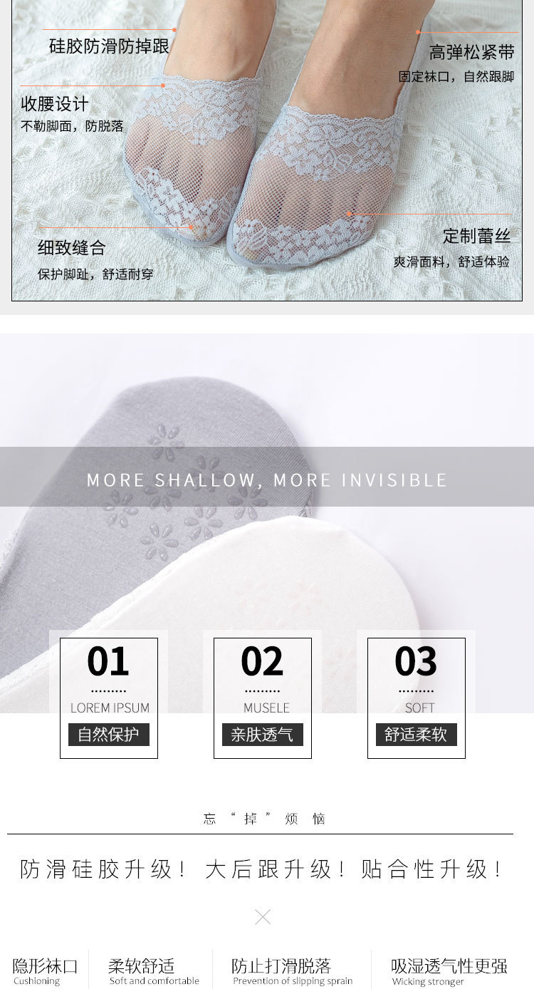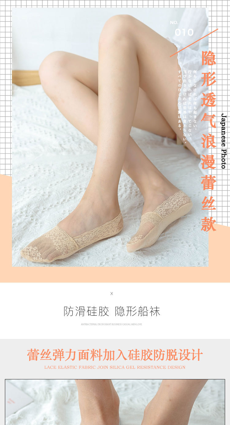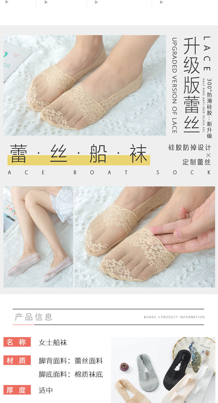 夏季薄款浅口短筒袜网纱花边蕾丝船袜女防滑蕾丝袜女短袜子女诸暨