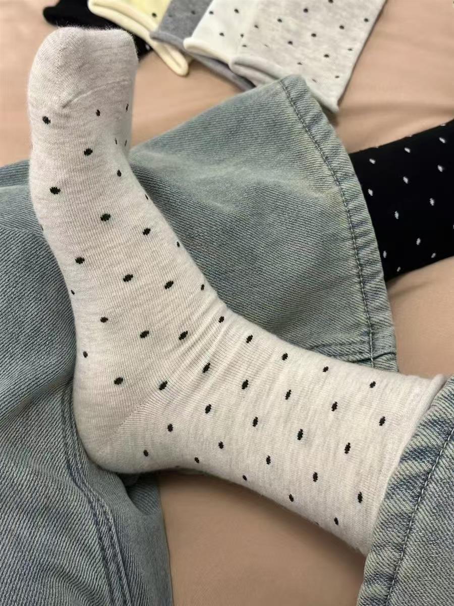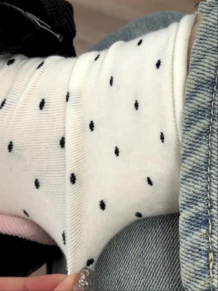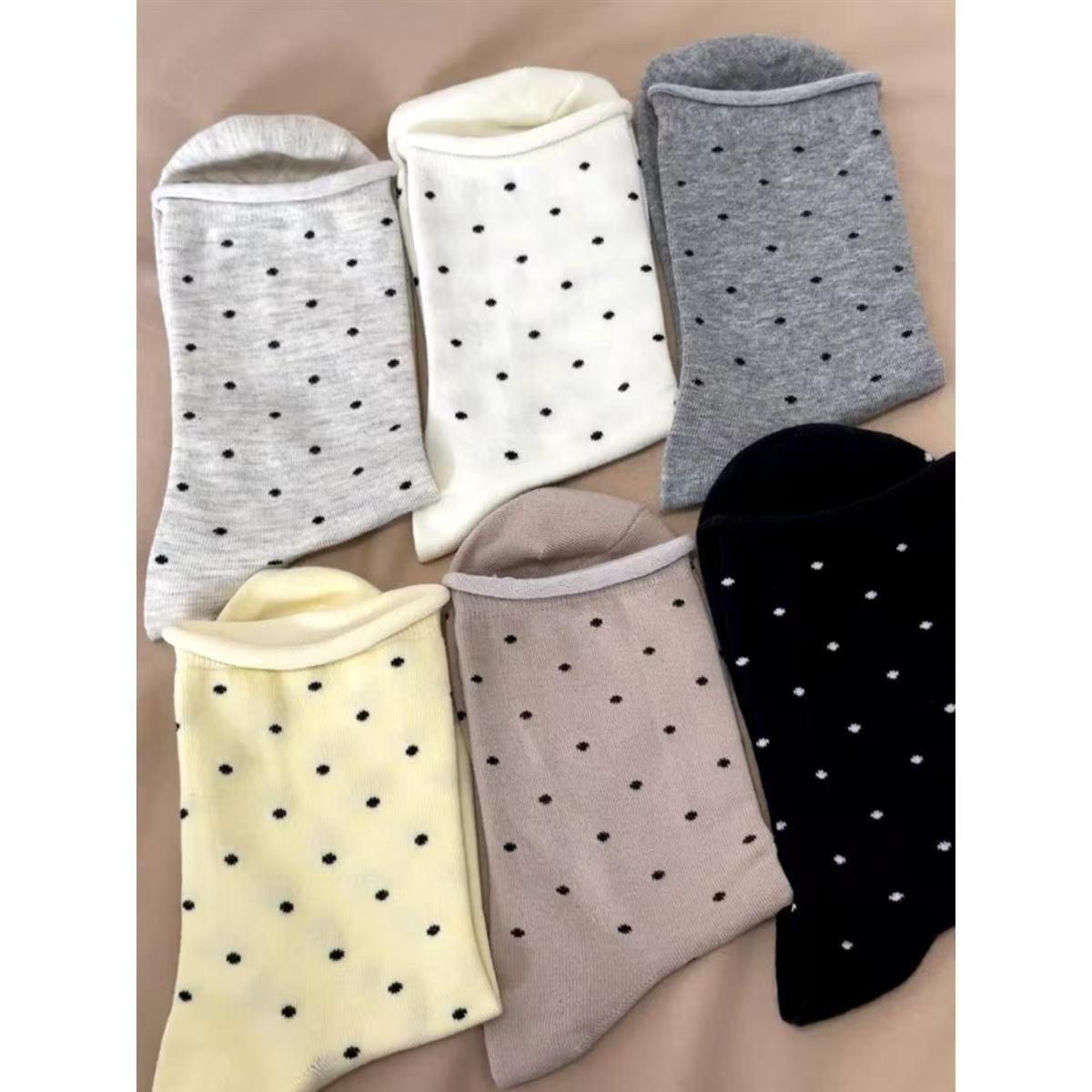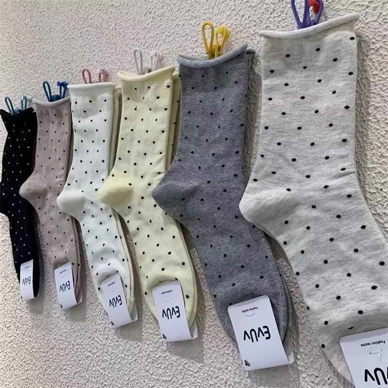 诸暨市波点袜子女白色堆堆袜卷边袜女春夏薄款中筒袜纯色百搭女袜