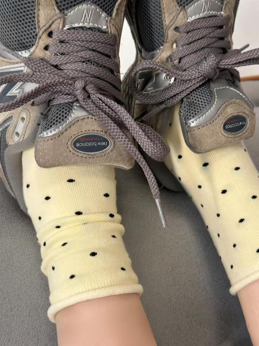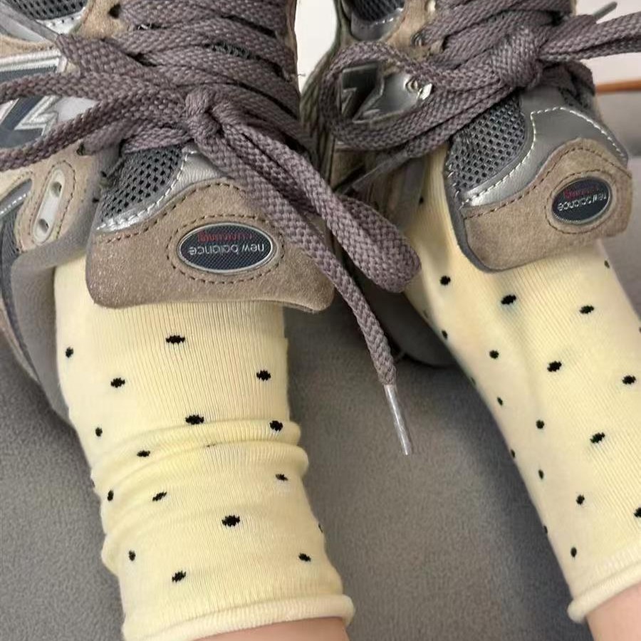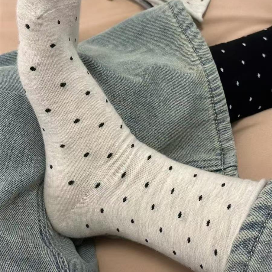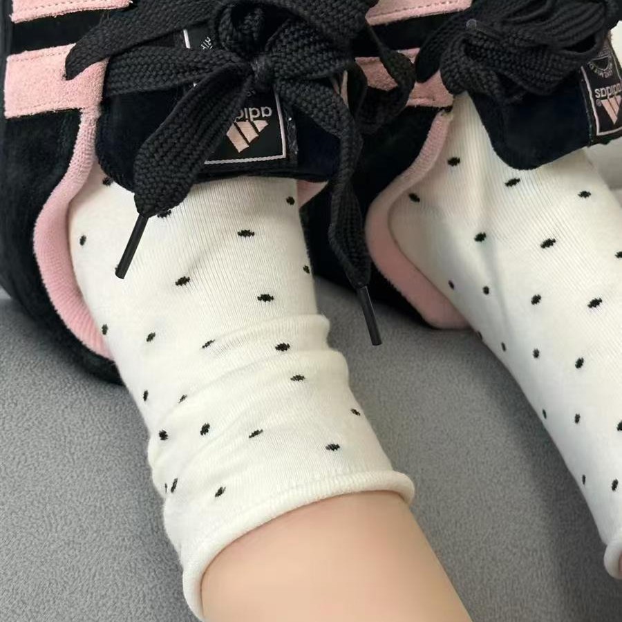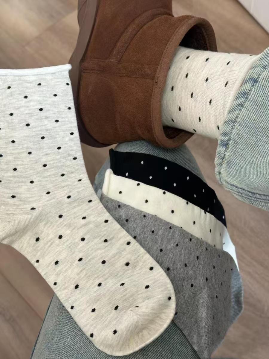 诸暨市波点袜子女白色堆堆袜卷边袜女春夏薄款中筒袜纯色百搭女袜