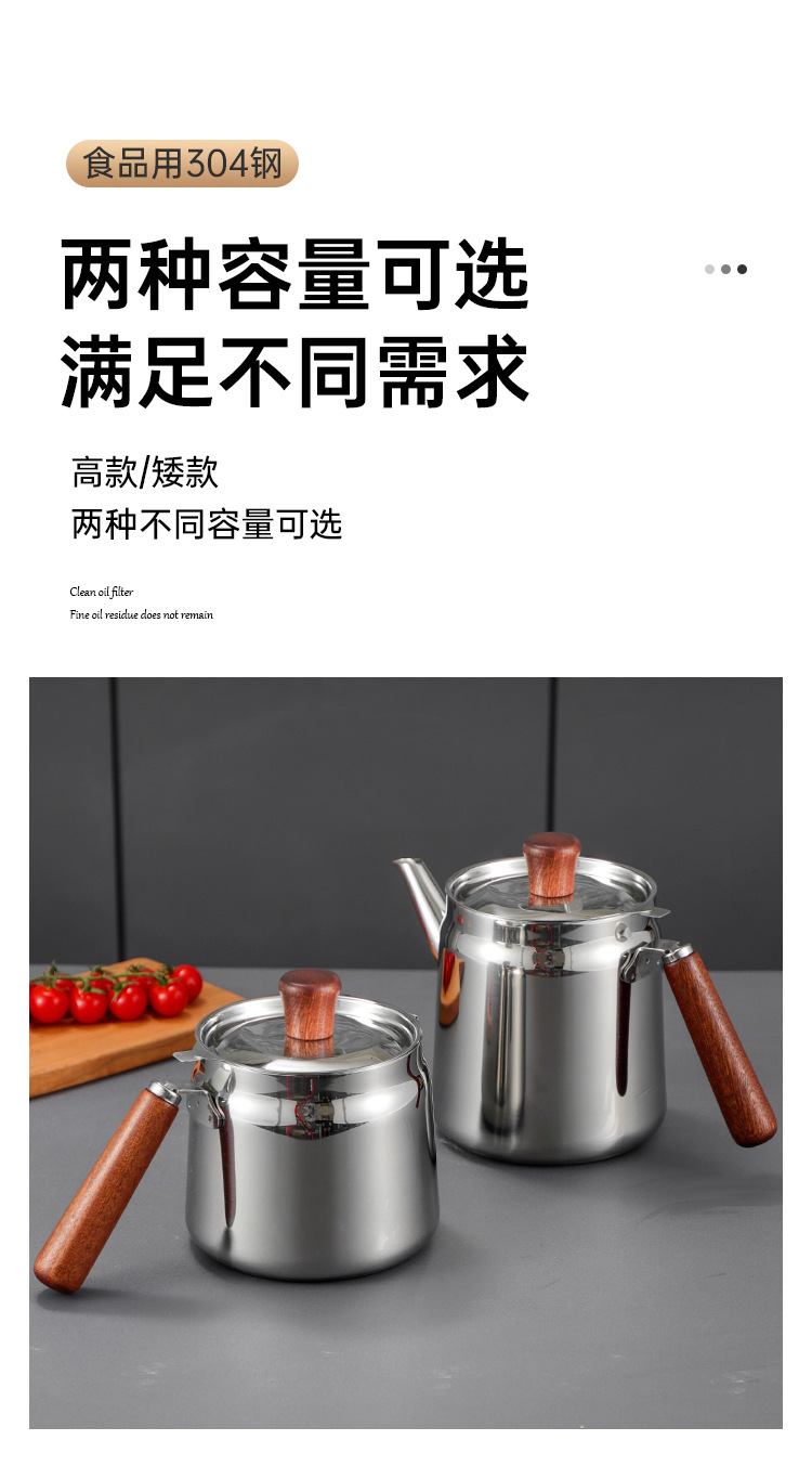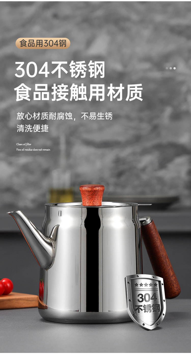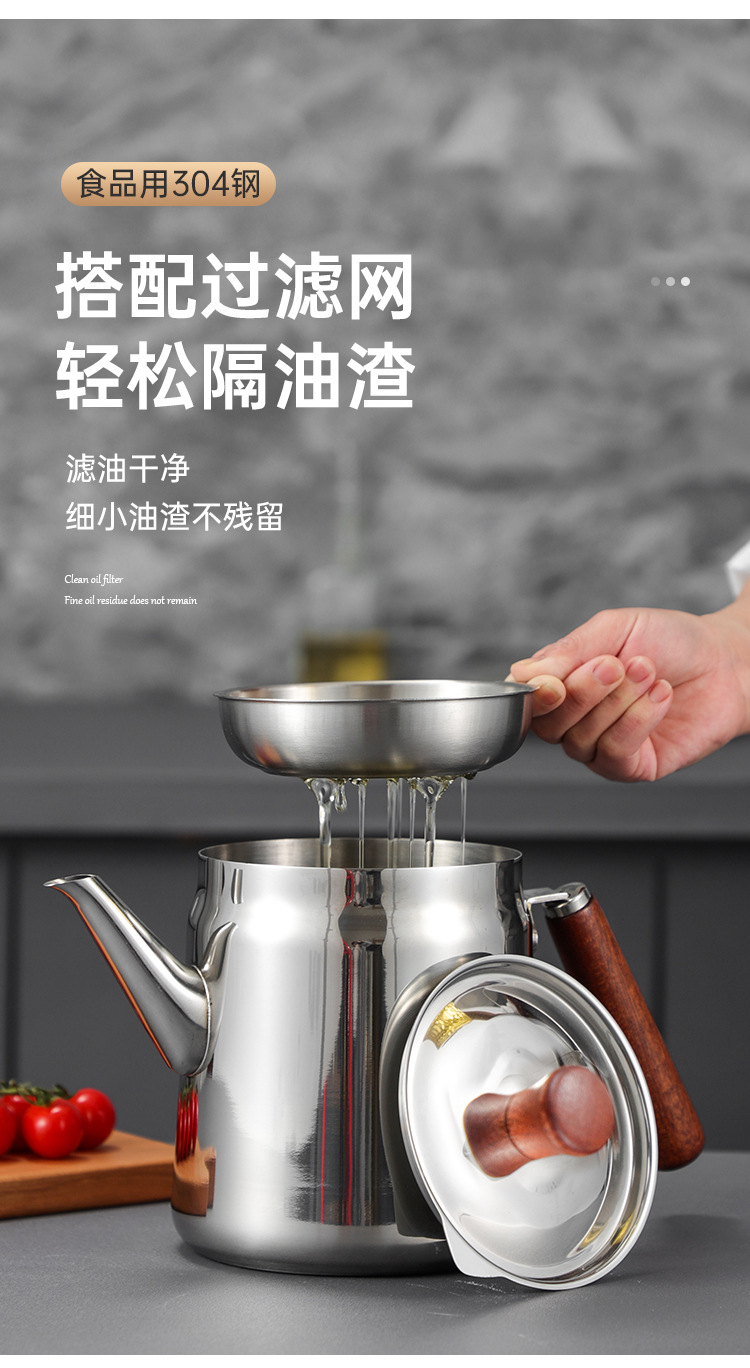 | 304 stainless steel-2.5l walnut handle oil draining pot(304不锈钢-2.5L 胡桃木柄滤油壶) | USD $11.72 | 99991 piece available |