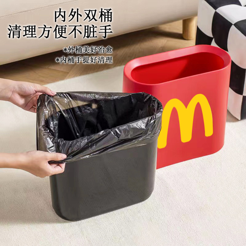 M麦当劳垃圾桶家用客厅卫生间创意高颜值大容量厕所夹缝双层纸篓