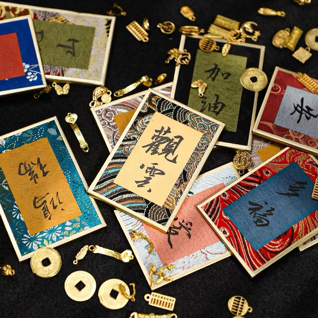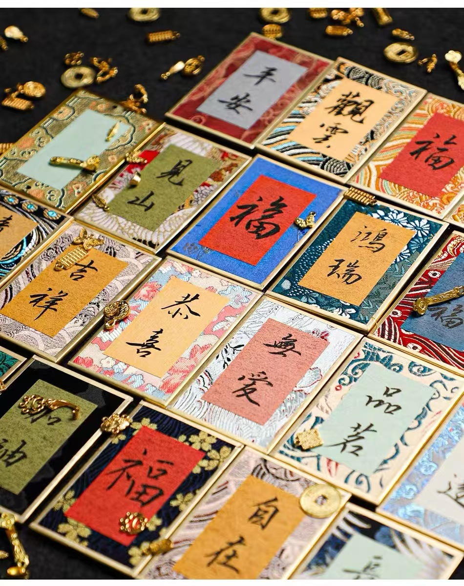 国风宣纸手写书法摆台卡片锦缎布面楮笺小卡纸古风文创宋锦硬卡纸