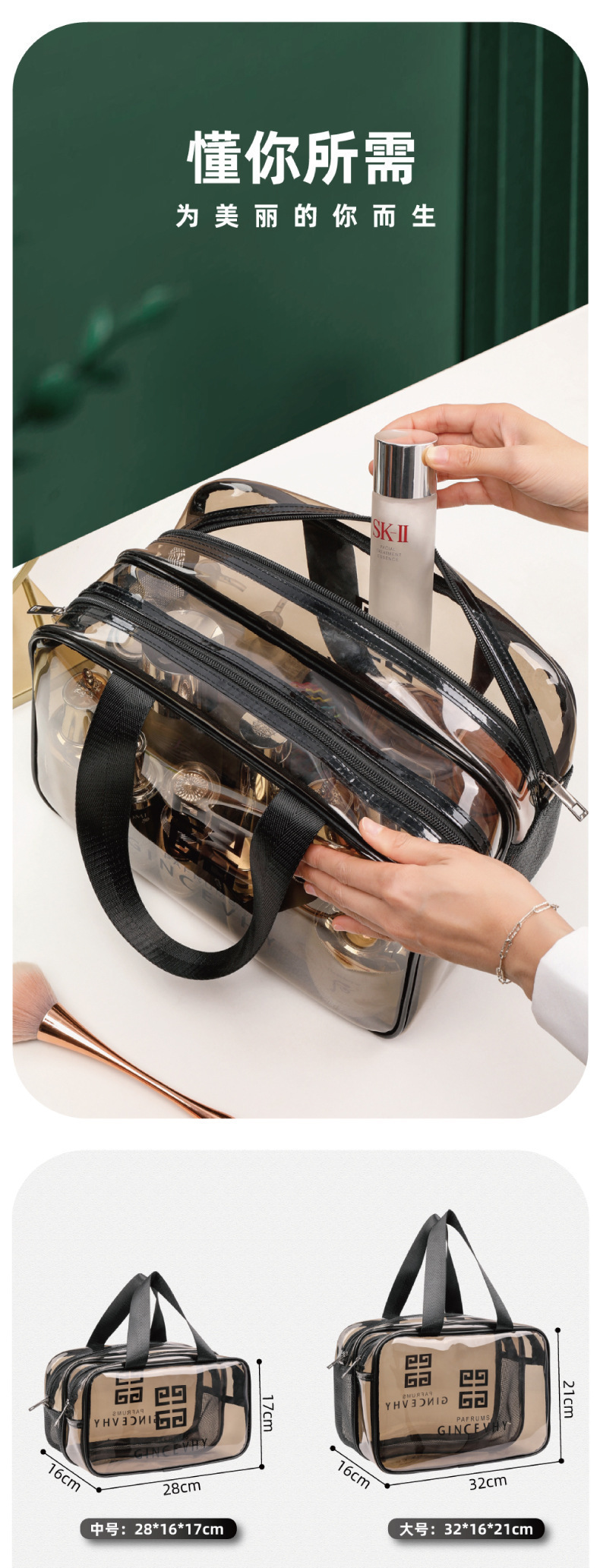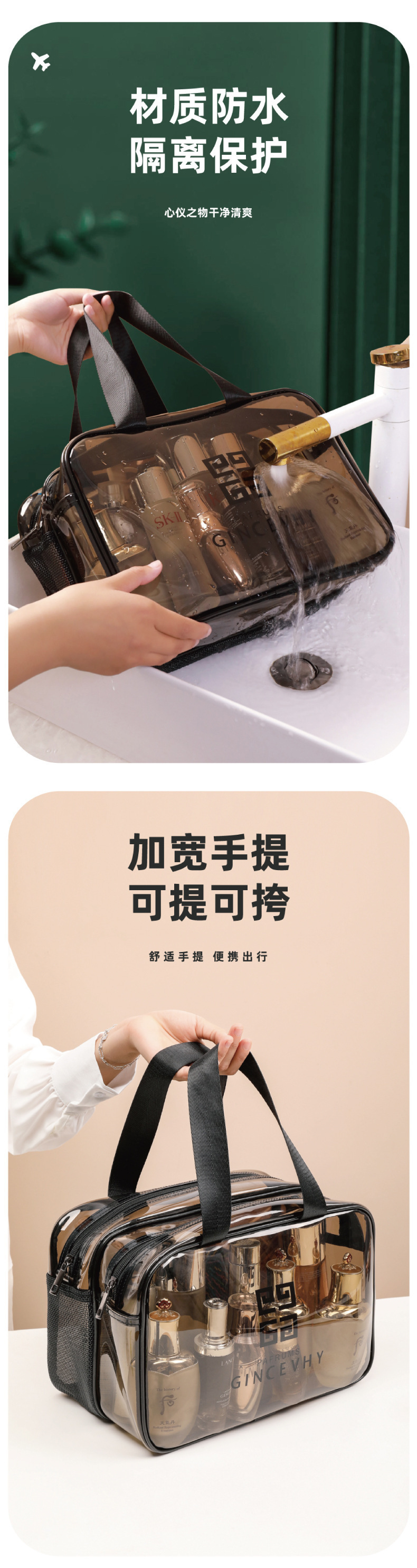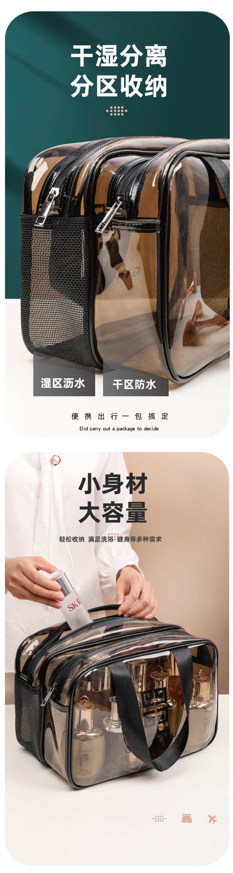化妆包PVC双层加厚透明干湿分离游泳包防水健身包大容量洗漱包