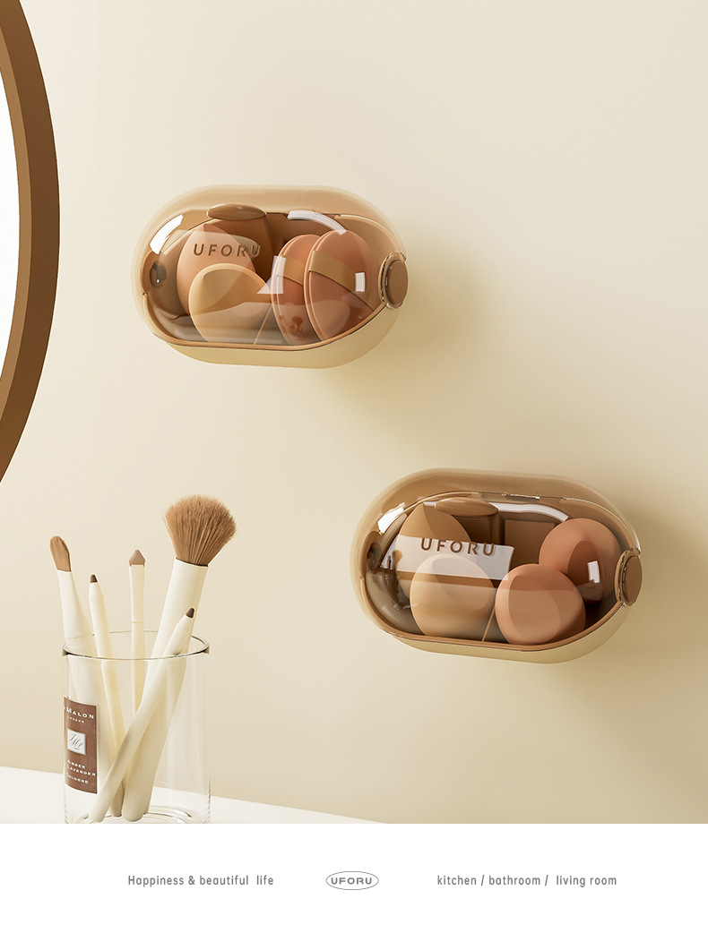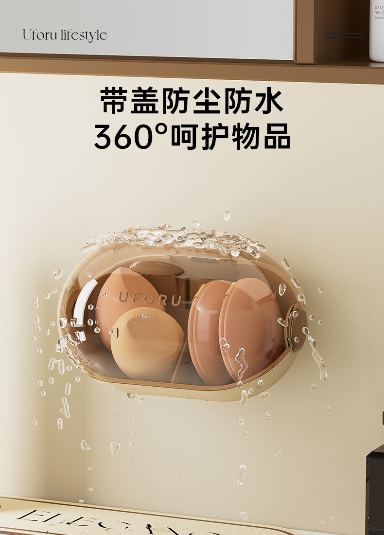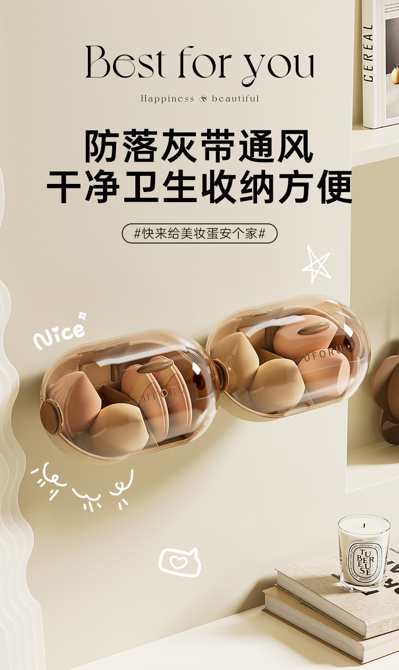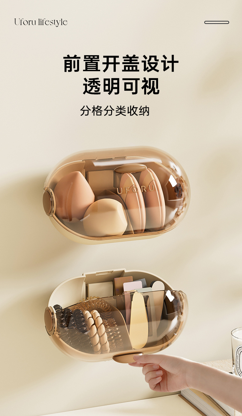 uforu 家用化妆品收纳盒免打孔墙挂带盖防灰防霉透气美妆蛋收纳盒