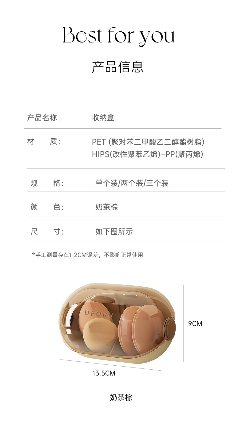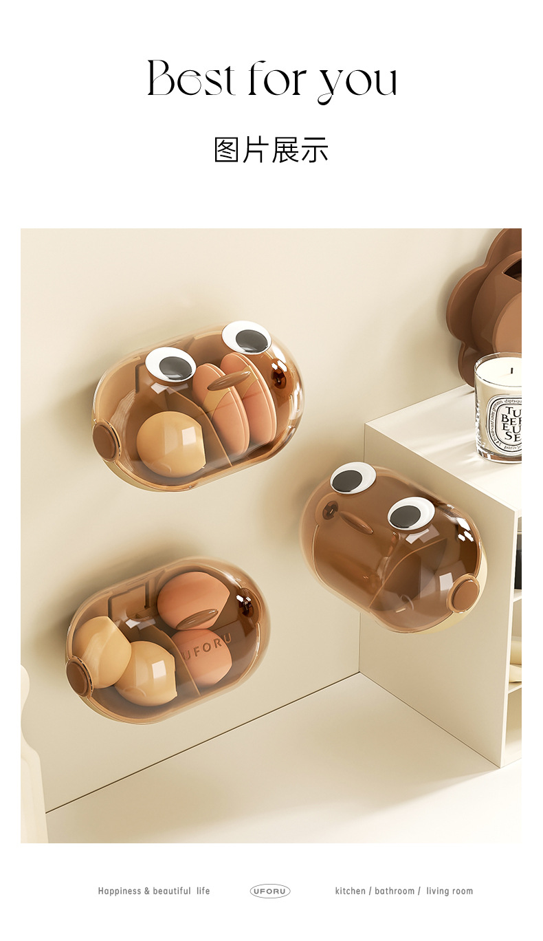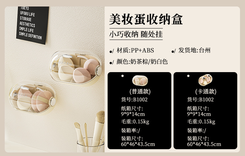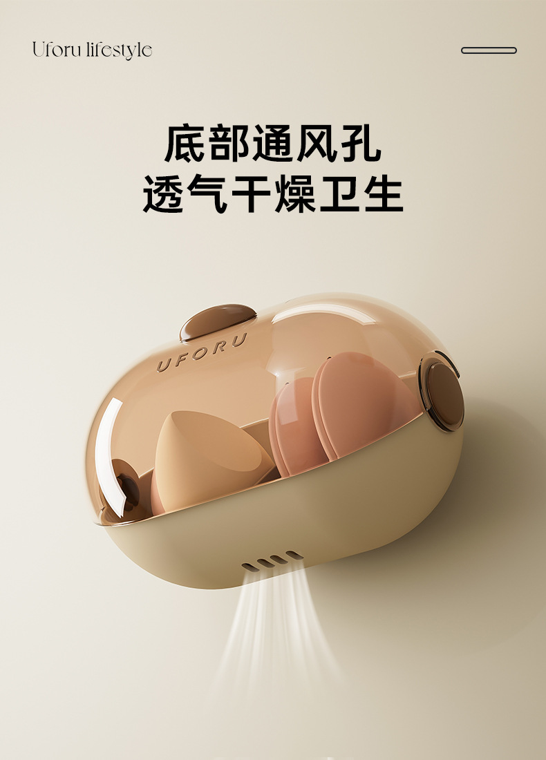 uforu 家用化妆品收纳盒免打孔墙挂带盖防灰防霉透气美妆蛋收纳盒
