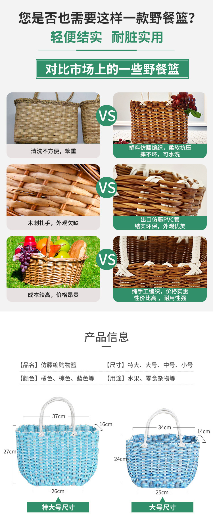 野餐篮子ins宠物购物水果用品工具买菜手提篮洗浴收纳筐菜篮家用