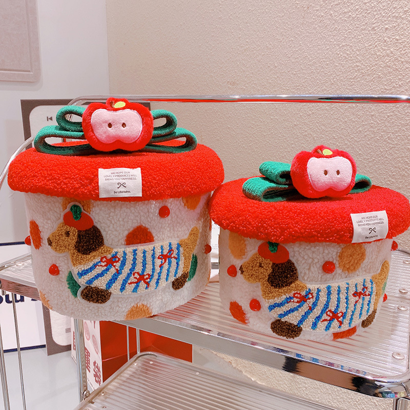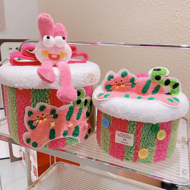HD11188A1羊羔毛条纹波点腊肠狗收纳桶日常家居桌面杂物零食收纳
