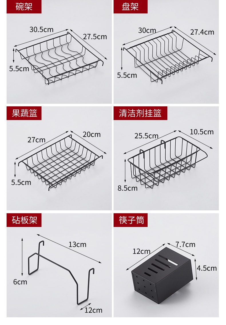 跨境碳钢水槽架贸易黑色便宜碗碟沥水架厨房碗盘砧板刀具置物架