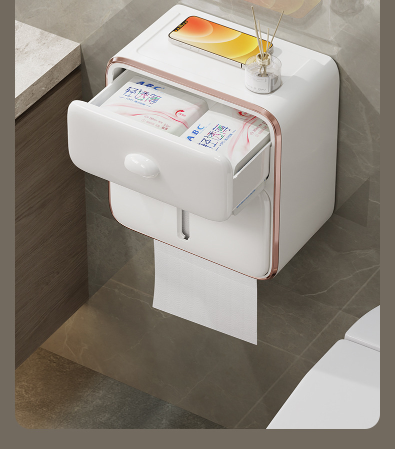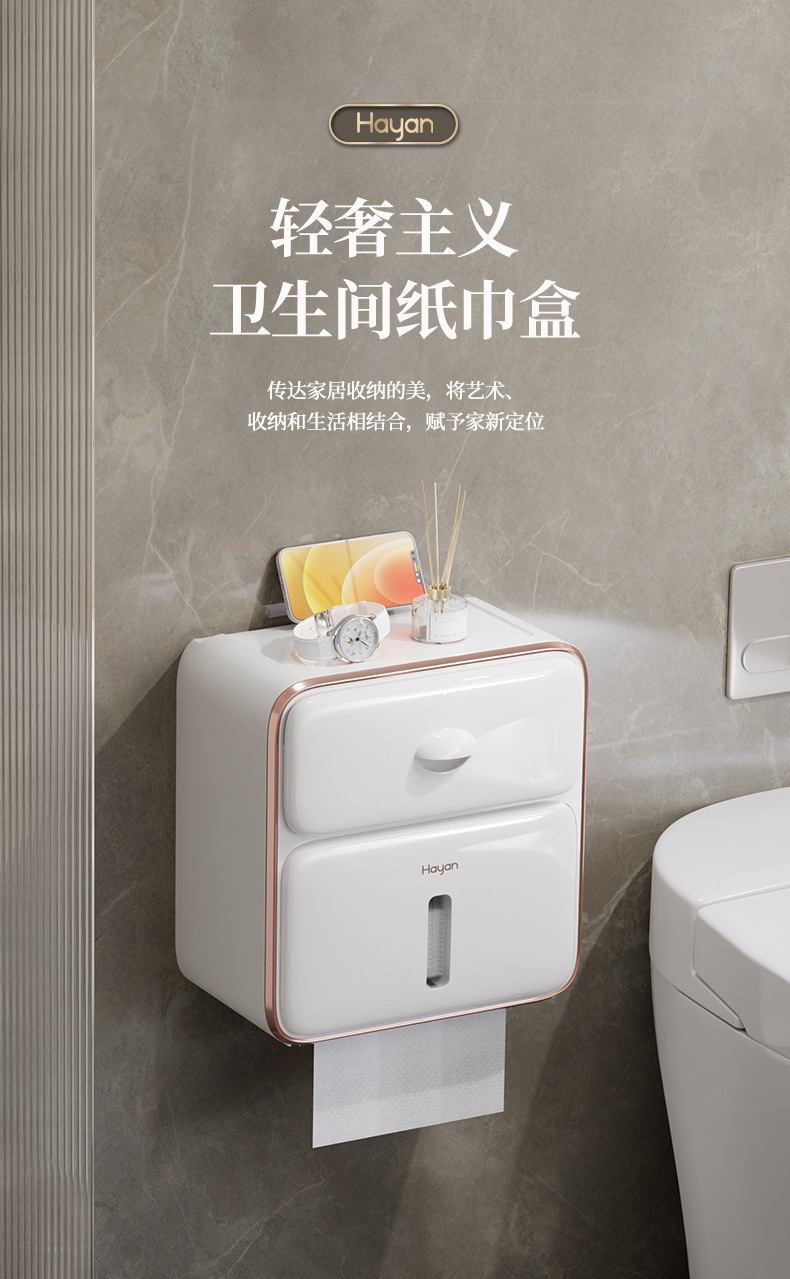 hayan海迎纸巾收纳盒抽屉式双层卫生间厕纸盒免打孔洗手间卷纸架