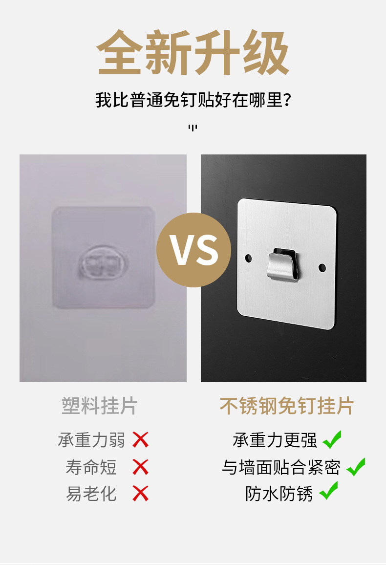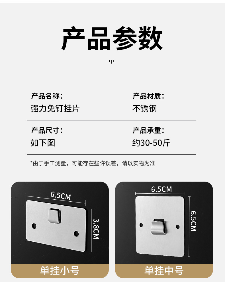 置物架专用免钉贴片不锈钢挂钩卡扣免打孔配件粘墙贴片单双钩挂片