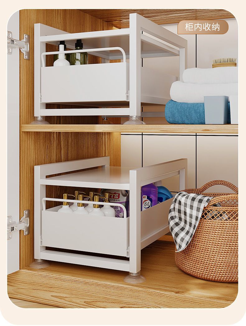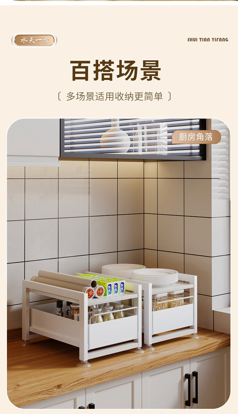 厨房下水槽置物架收纳调料碗碟抽拉式水池收纳架橱柜台面分层架